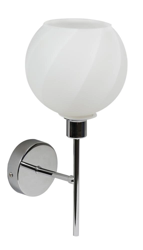 - Kinkiet Raul to połączenie elegancji i funkcjonalności - chromowane wykończenie i biały szklany klosz nadają mu stylowego charakteru, a regulowany kąt padania światła pozwala na dopasowanie oświetlenia do potrzeb użytkownika.