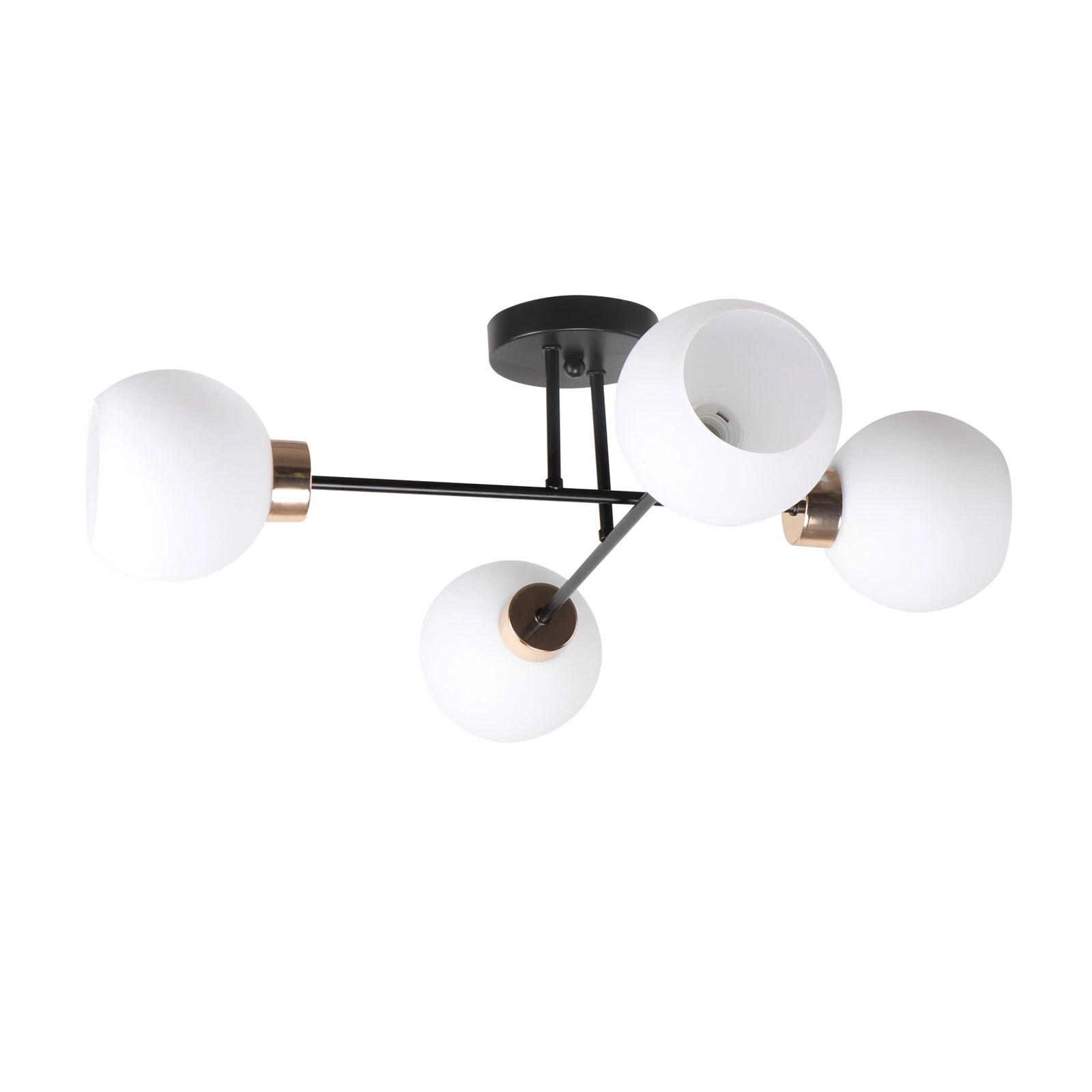 Poznaj lampę sufitową Amanda od firmy CANDELLUX LIGHTING. To nowoczesne oświetlenie o wyjątkowym designie, które idealnie wpasuje się w każde wnętrze. Jej wyjątkowym atutem jest czteropunktowe źródło światła, które zapewnia doskonałe oświetlenie nawet dużych pomieszczeń. Lampa wykorzystuje żarówki o gwincie E27 i mocy do 40W, co pozwala na doboru optymalnej jasności. Oprawa lampy w kolorze czarnym, z elementami złotymi, nadaje jej eleganckiego wyglądu, a białe klosze rozpraszają światło, tworząc przytulną atmosferę.