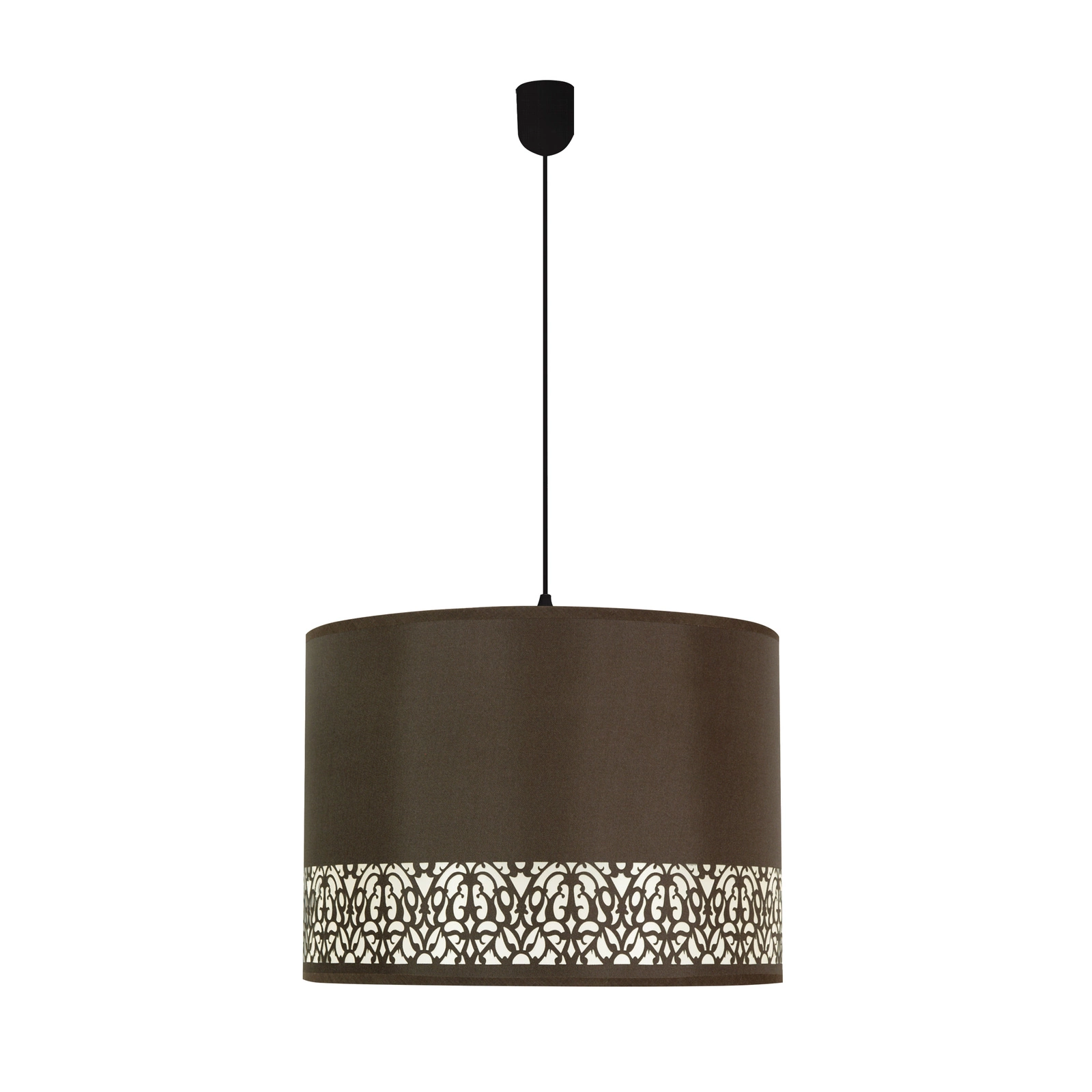 Znakomita lampa wisząca Arabesca to doskonałe połączenie klasyki z nowoczesnością, które wprowadzi do Twojego wnętrza niespotykaną atmosferę. Wyjątkowy abażur o wymiarach 33x33x24 cm, ozdobiony delikatnymi arabeskami, doda wnętrzu wyjątkowego charakteru. Brązowy odcień abażura wprowadza do oświetlenia nutę elegancji i subtelności.