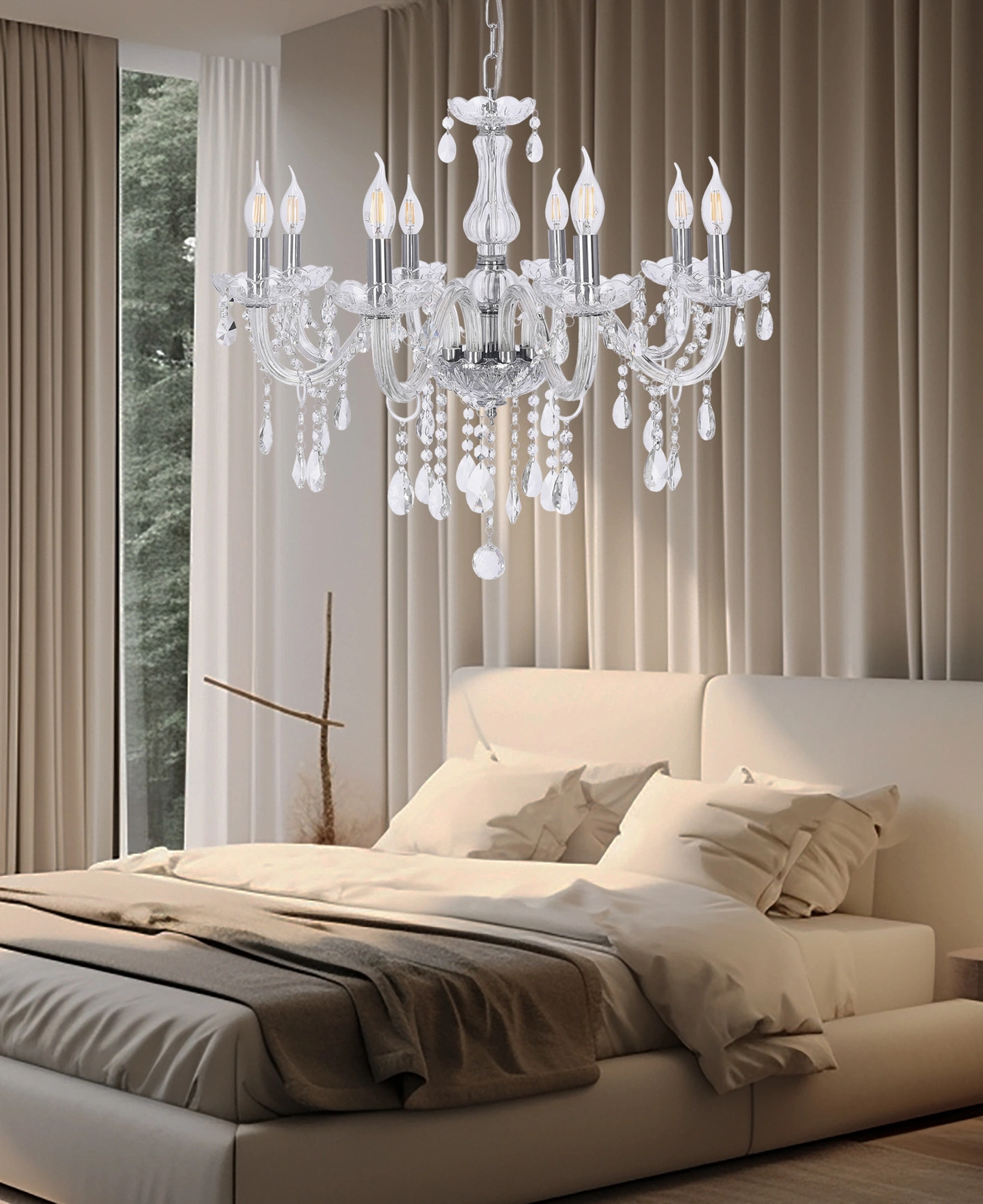 Lampa Cristallo wyposażona jest w osiem oprawek E14, które pozwalają na równomierne rozproszenie światła w pomieszczeniu. Moc 40W gwarantuje odpowiednie oświetlenie, idealne do czytania książek czy relaksu po ciężkim dniu.