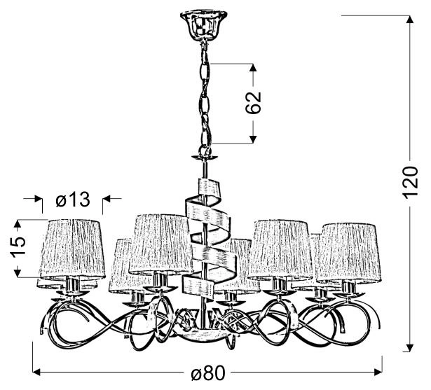 Lampa wisząca Denis 8x40W E14 chrom/złoty
