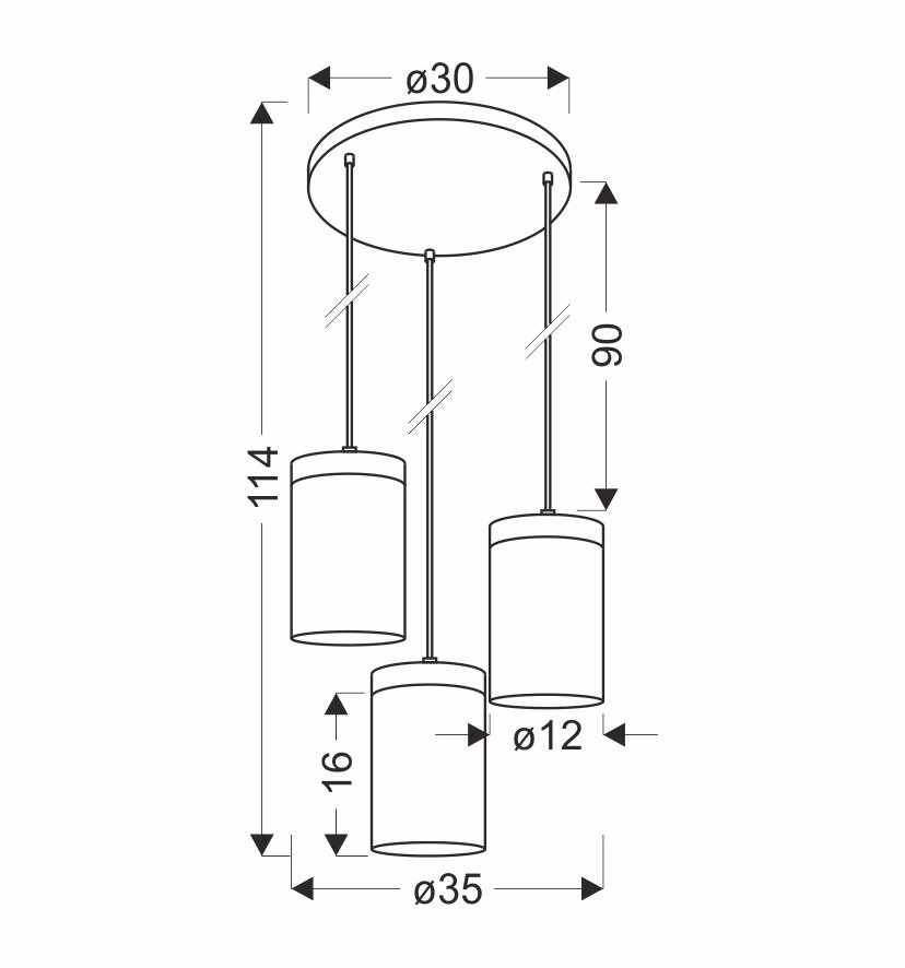 Wyposażenie lampy w trzy oprawki żarówkowe E27 o mocy 40W zapewnia optymalne oświetlenie, które jest jednocześnie efektywne i przyjazne dla oka. Dymione klosze dodają przytulności, tworząc idealne warunki do relaksu po ciężkim dniu lub stworzenia odpowiedniego nastroju podczas rodzinnych posiłków.