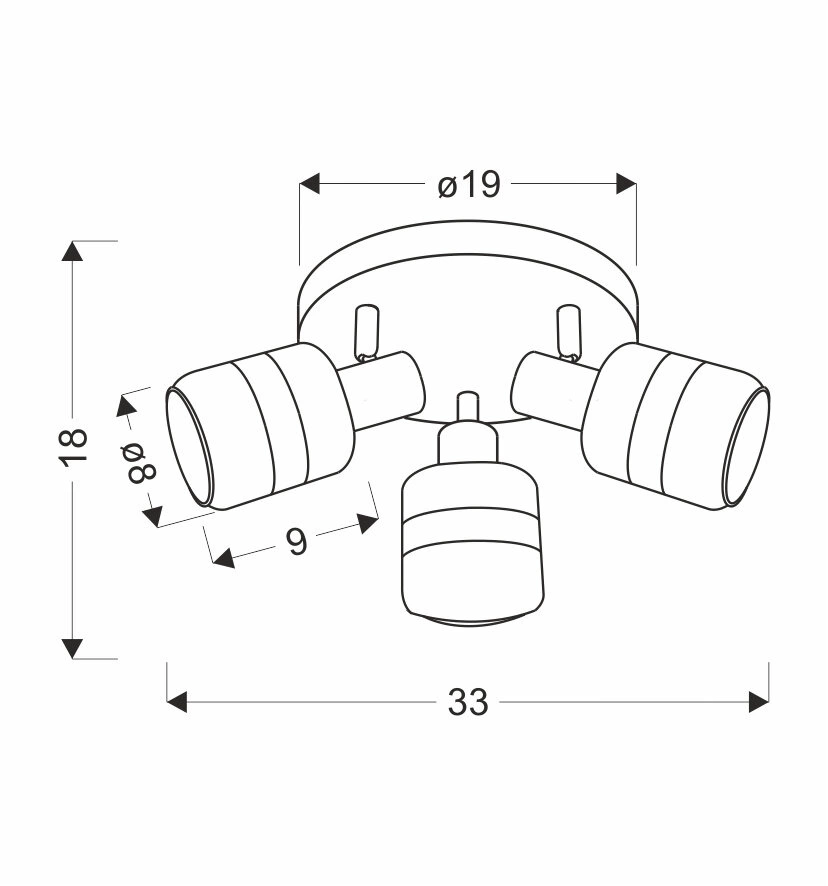 - Lampa wyposażona jest w trzy oprawy na żarówki typu E14 o mocy do 40W (żarówki nie są dołączone do zestawu).