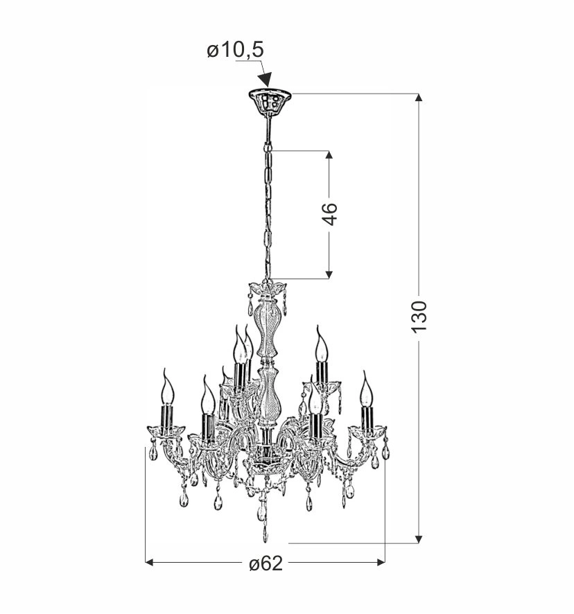 Prezentowany model lampy wiszącej Maria Teresa 8x40W E14, to arcydzieło sztuki dekoracyjnej, które wprowadzi do każdego pomieszczenia nutę luksusu i elegancji. Została stworzona z myślą o osobach ceniących sobie wyszukany design i klasyczne piękno. Wykonana z metalu i tworzywa, ozdobiona kryształami, jest prawdziwym klejnotem wśród lamp wiszących. Dzięki regulowanemu łańcuchowi, na którym zawieszona jest lampa, możemy dostosować jej wysokość do indywidualnych potrzeb i charakteru pomieszczenia.