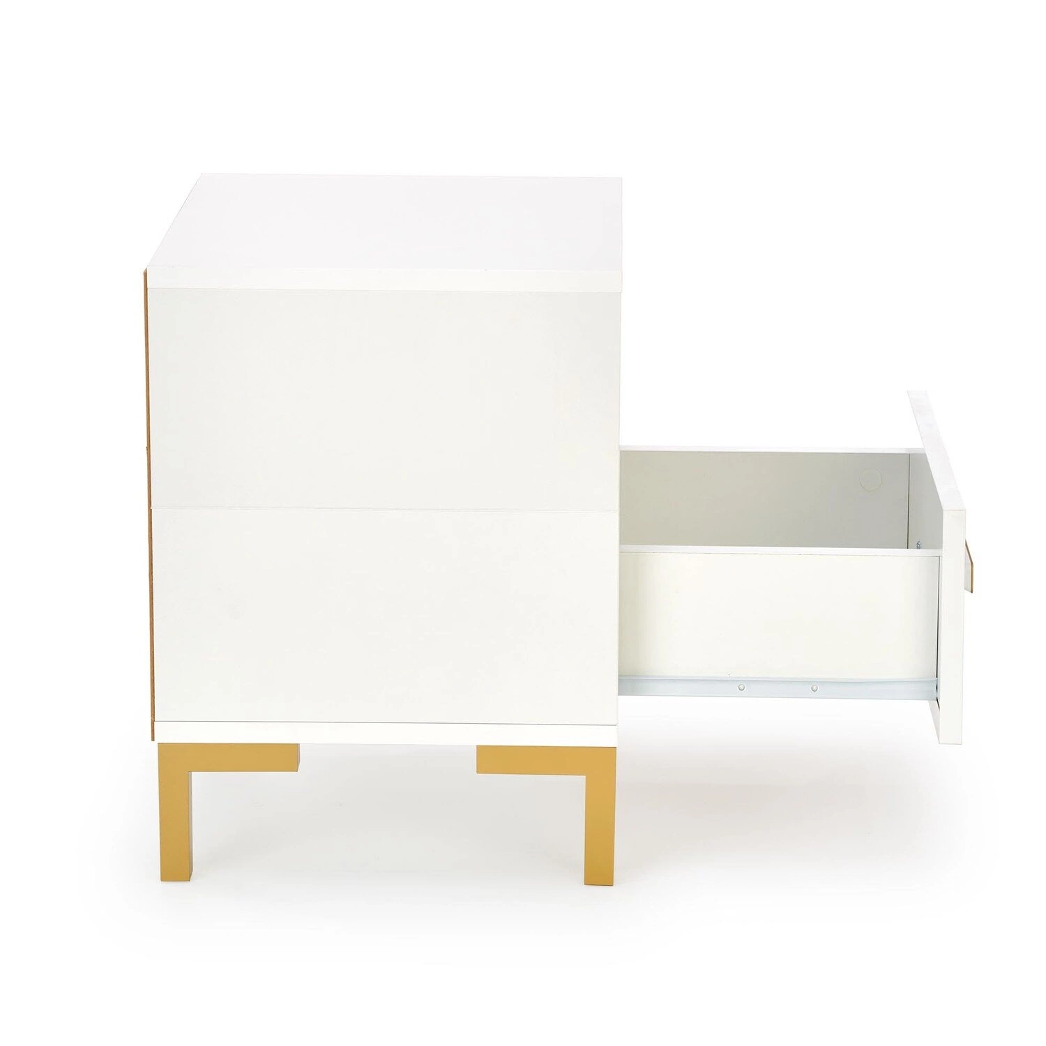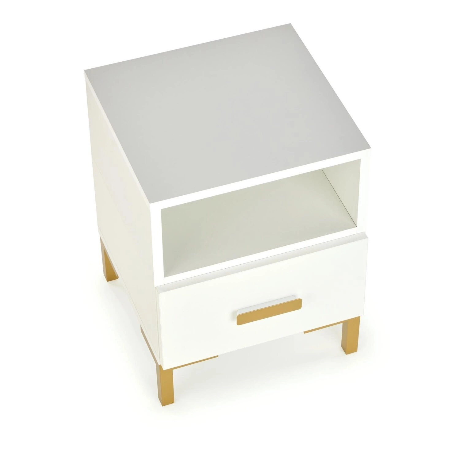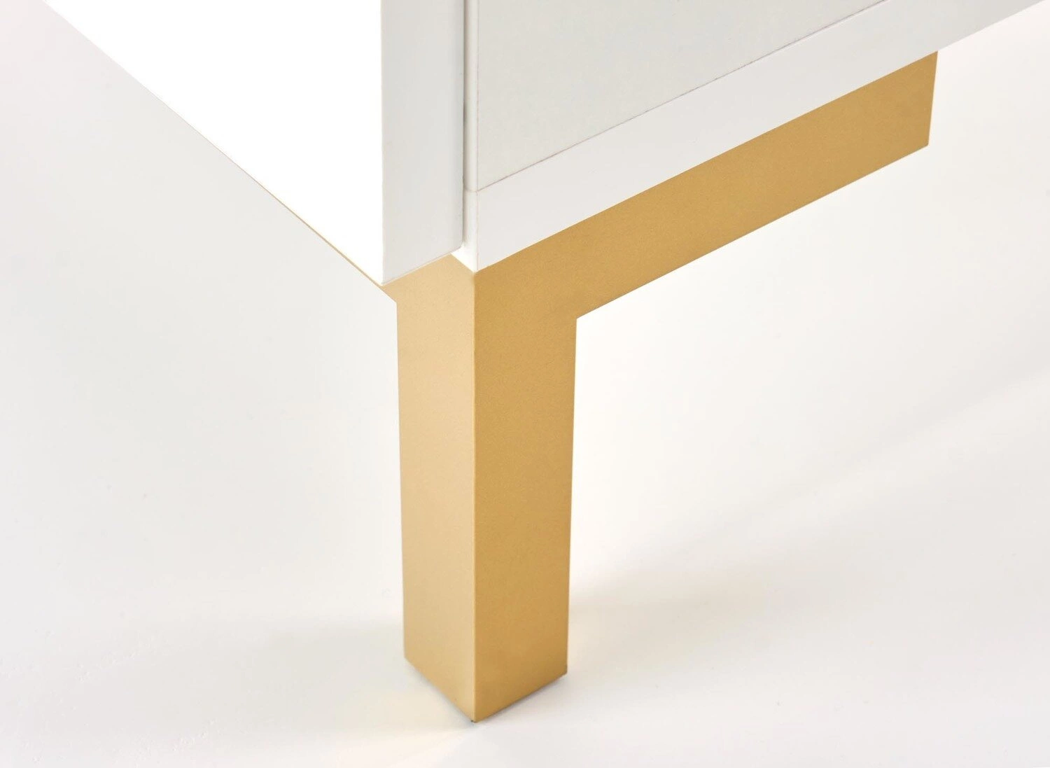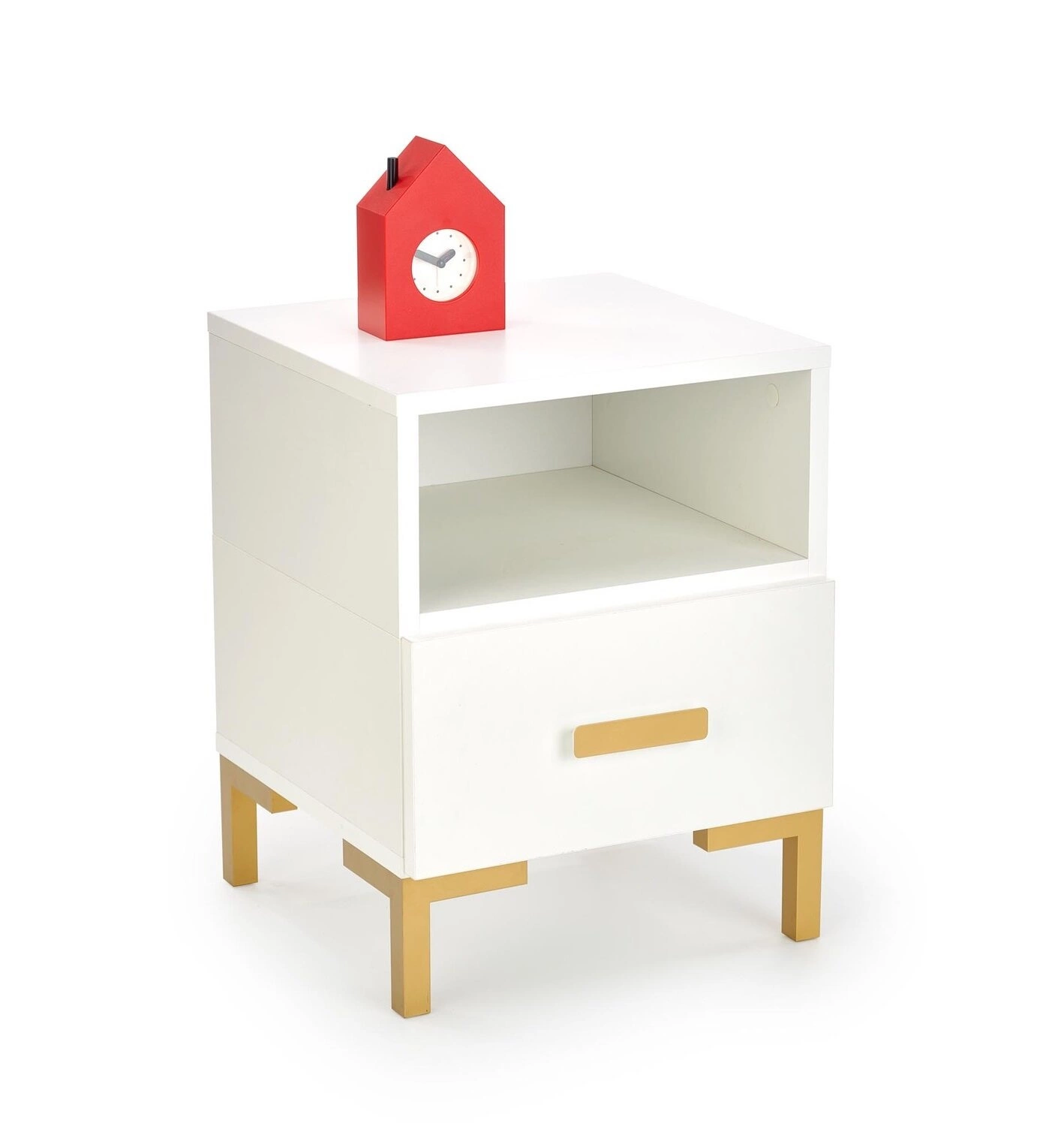 Szafka nocna Tisaia zachwyca ponadczasowym, białym wykończeniem, które rozjaśni każde wnętrze i doda mu lekkości. Złote nóżki wprowadzają nutę nowoczesnej elegancji, doskonale komponując się z jasnymi aranżacjami i modnymi dodatkami. Jej uniwersalny charakter sprawia, że świetnie sprawdzi się zarówno w klasycznej sypialni, jak i w młodzieżowym pokoju, podkreślając indywidualny styl domowników.