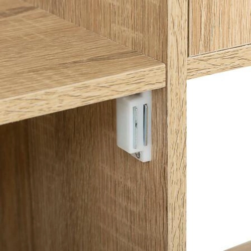 Prosta w swoim wykonaniu, a jednocześnie niezwykle funkcjonalna - tak w skrócie można opisać szafkę Bivoak 3-drzwiową. Wykonana z wysokiej jakości płyty wiórowej, pokrytej efektem drewna, sprawia, że mebel ten jest nie tylko trwały, ale również stylowy. Szafka jest idealna do każdego pomieszczenia - może służyć jako miejsce do przechowywania książek w salonie, naczyń w kuchni, czy kosmetyków w łazience. Dzięki swoim kompaktowym wymiarom (60 cm szerokości, 95 cm wysokości i 29,5 cm głębokości) doskonale sprawdzi się nawet w małych pomieszczeniach.
