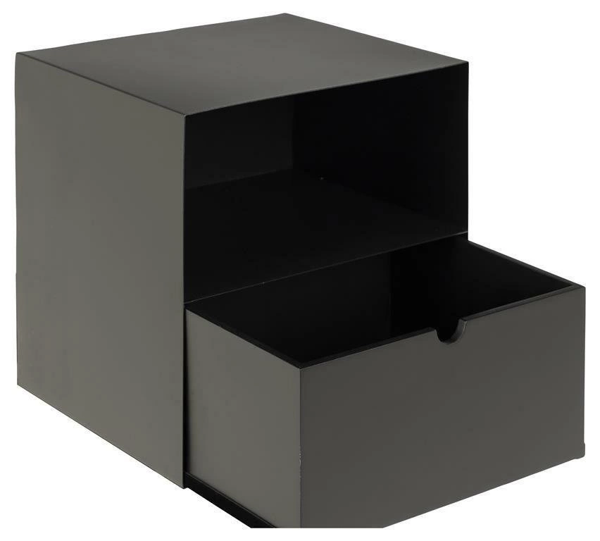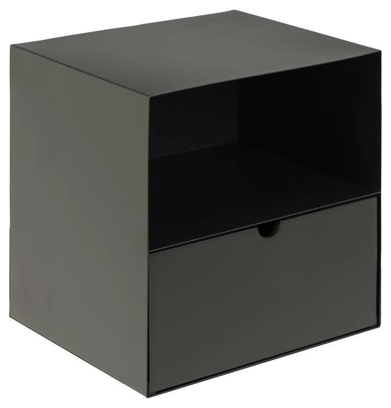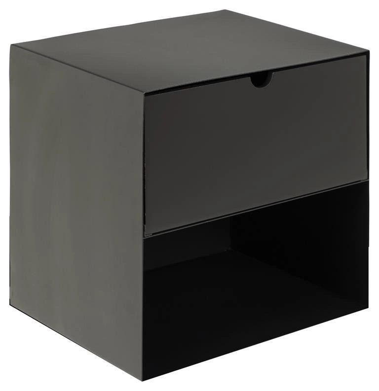 Korpus Joliet wykonany jest z malowanego proszkowo metalu, zaś szuflada z wytrzymałego bambusa. Szafka zapewnia możliwość personalizacji- szufladę można umieścić na górze lub na dole. W połowie wysokości szafki znajduje się metalowa półka. Całą konstrukcję możesz postawić na podłodze, ale także zawiesić. Jej niewielki rozmiar (30x30) pozwala na zastosowanie jej nawet w pomieszczeniu o niewielkim metrażu. Szafka posiada jedną zamykaną szufladę na prywatne rzeczy, zaś druga odsłonięta półka to idealne miejsce na ulubione książki.