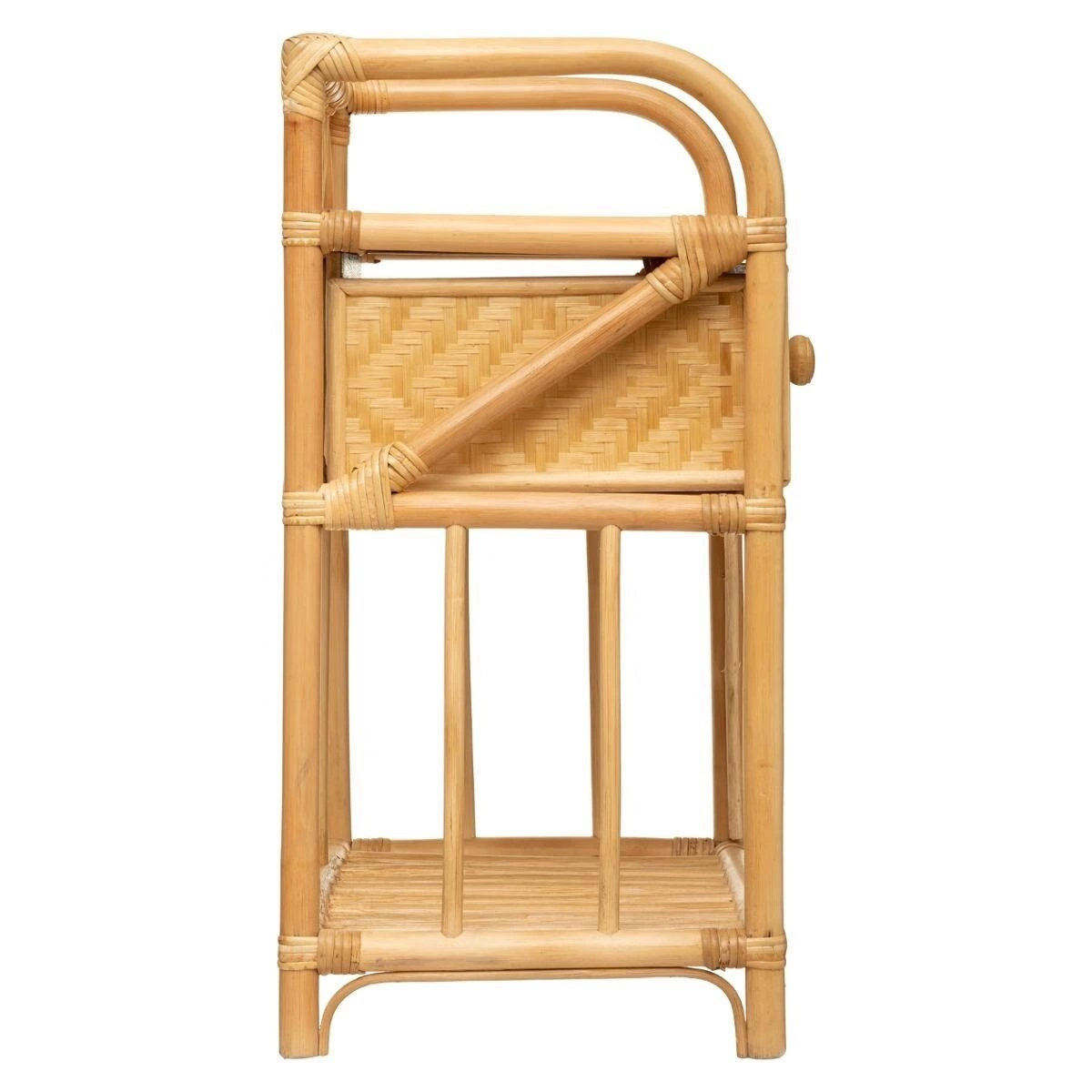 Szafka nocna Aoni rattan naturalny to idealny wybór dla miłośników romantycznej atmosfery w sypialni. Ten uroczy stolik nocny wykonany z rattanu nie tylko doda Twojemu wnętrzu odrobinę delikatności i naturalności, ale także zapewni praktyczne miejsce do przechowywania. Dzięki dwóm półkom i szufladzie, będziesz mieć wszystko, czego potrzebujesz na wyciągnięcie ręki. Bez problemu pomieścisz na nim swoją ulubioną książkę, lampkę nocną, czy budzik.