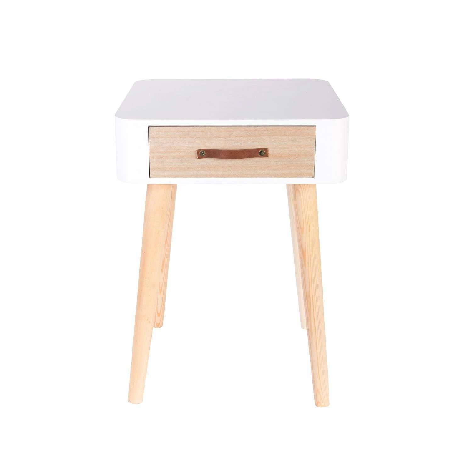 Szafka nocna Enano to harmonijne połączenie funkcjonalności i estetyki, które doskonale wpisuje się w styl skandynawski. Jej minimalistyczna forma, biel korpusu i blatu w zestawieniu z naturalnym drewnem frontu szuflady oraz nóg, tworzą przytulną i ciepłą kompozycję. Zaokrąglone krawędzie i skośne nóżki nadają meblowi lekkości, sprawiając, że idealnie pasuje zarówno do nowoczesnych, jak i klasycznych aranżacji sypialni.