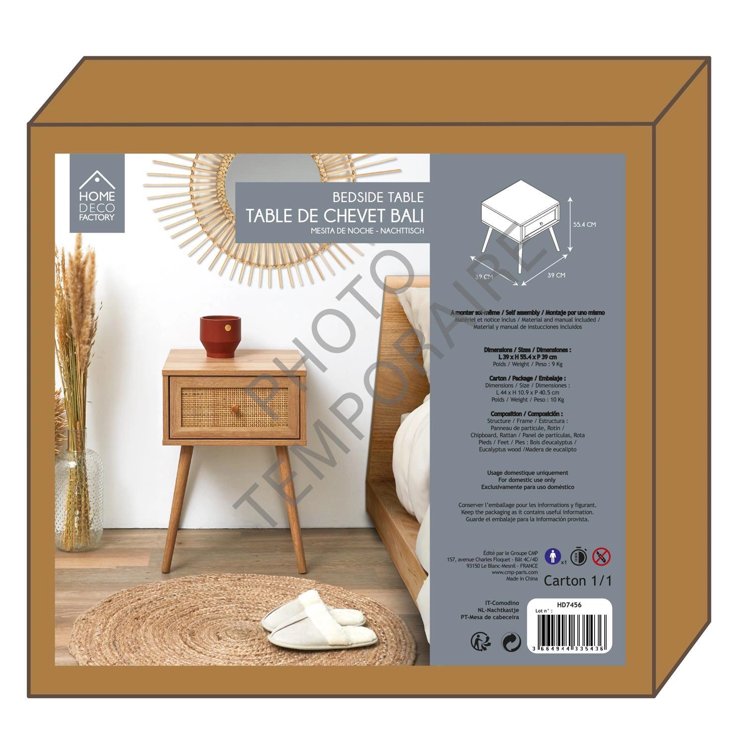 Kolekcja Bali została stworzona po to, by cieszyć cały rok miłośników egzotycznego klimatu. Szafka nocna Bali wprowadzi do wnętrza styl boho. Jest to wyjątkowy mebel idealny do wnętrz o ciepłej i subtelnej stylistyce. Szafka została wykonana z drewnianej sklejki. Front szuflady dodatkowo wzbogacono rattanowym pleceniem, które prezentuje się bardzo efektownie. Pojemna szuflada zmieści wszystkie najpotrzebniejsze rzeczy, które muszą znaleźć się przy łóżku, takie jak ulubiona książka czy ładowarki. Podstawą szafki są cztery nogi, które dzięki swojej budowie gwarantują stabilizację. Jeśli zdecydujesz się na zakup kilku mebli z serii Bali, stworzą one integralny i urokliwy zestaw. Szafka wymaga samodzielnego montażu, który jest bardzo intuicyjny i prosty.
