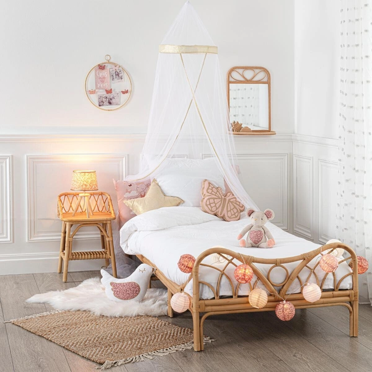 Ta szafka nocna z rattanu doskonale odnajdzie się w sypialni w stylu boho, skandynawskim lub ekologicznym. Możesz wykorzystać ją nie tylko przy łóżku, ale także w pokoju dziecka, gdzie stworzy miejsce na książeczki i lampkę nocną. Wymiary (wysokość 56 cm, szerokość 37 cm, głębokość 30 cm) pozwalają łatwo dopasować ją do różnych wnętrz, nawet tych o ograniczonej przestrzeni.