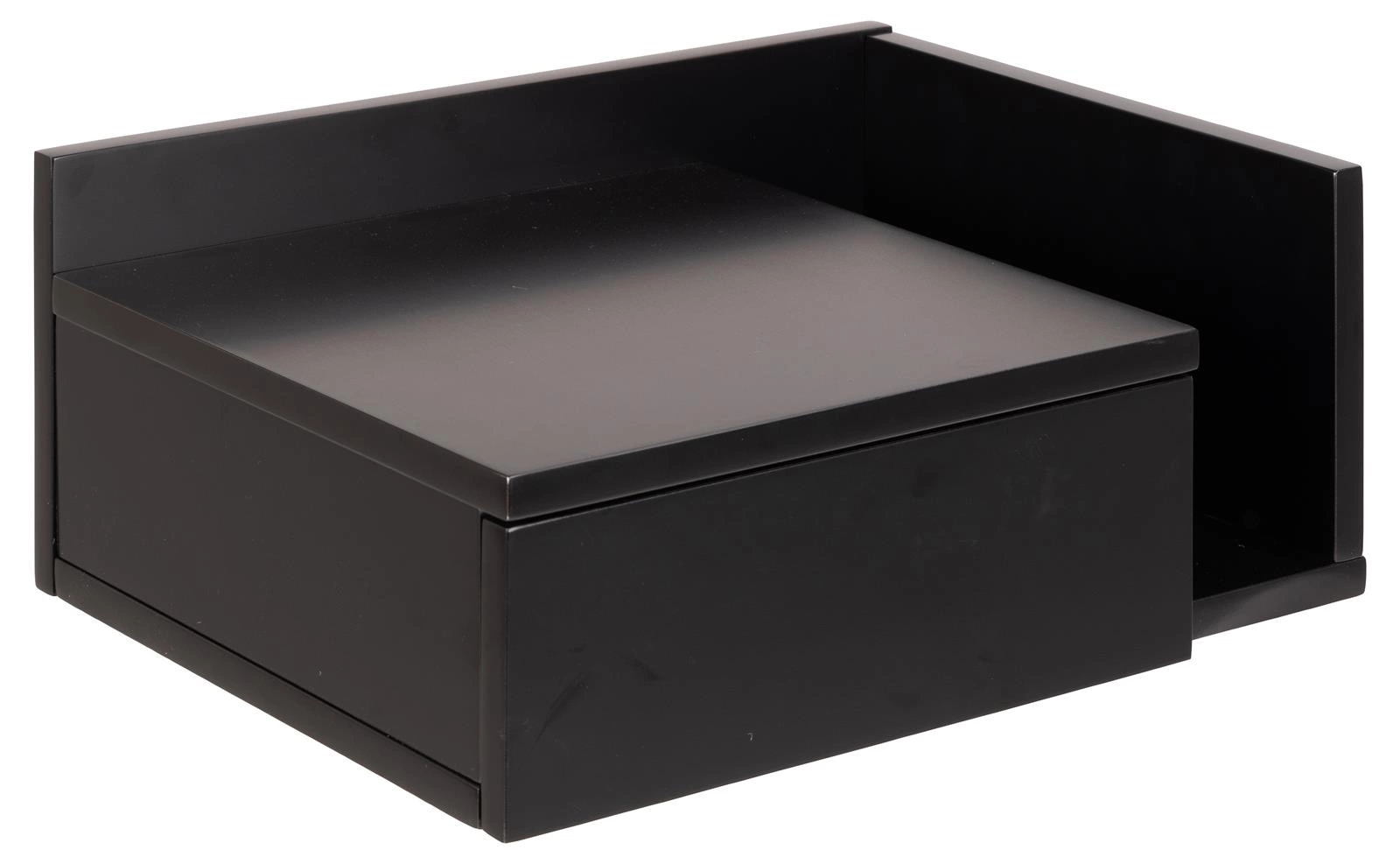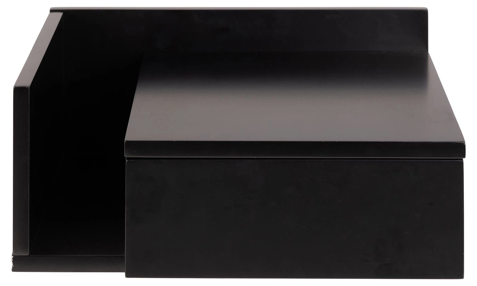 Przygotuj się do stworzenia stylowej, nowoczesnej sypialni szafką nocną Ashlan II w kolorze czarnym. Jej minimalistyczny design i prosta geometria sprawiają, że z pewnością wpasuje się w Twój nowoczesny wystrój. Nie daj się jednak zwieść jej niewielkim rozmiarom, została zaprojektowana tak, by pomieścić najpotrzebniejsze rzeczy przy łóżku. Mebel wykonany jest z wytrzymałej płyty MDF i będzie Ci służyć przez lata. Wyposażona jest w jedną zamykaną szufladę i małą boczną półkę do przechowywania np. książek czy czasopism, dzięki czemu masz łatwy dostęp do wszystkich swoich rzeczy. Szuflada bez uchwytów sprawia, że mebel zyskuje na elegancji. Projekt oferuje mnóstwo miejsca i funkcjonalności bez kompromisów w kwestii stylu!