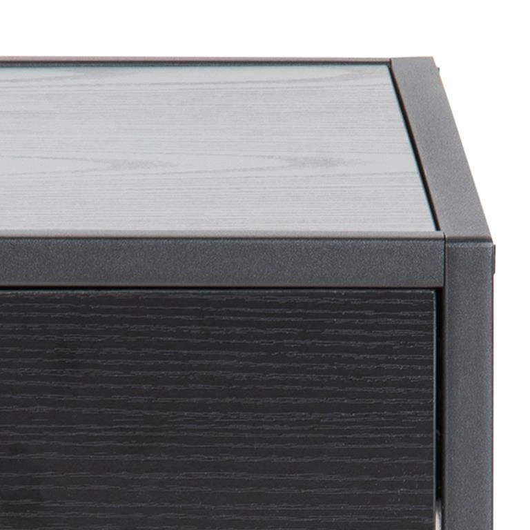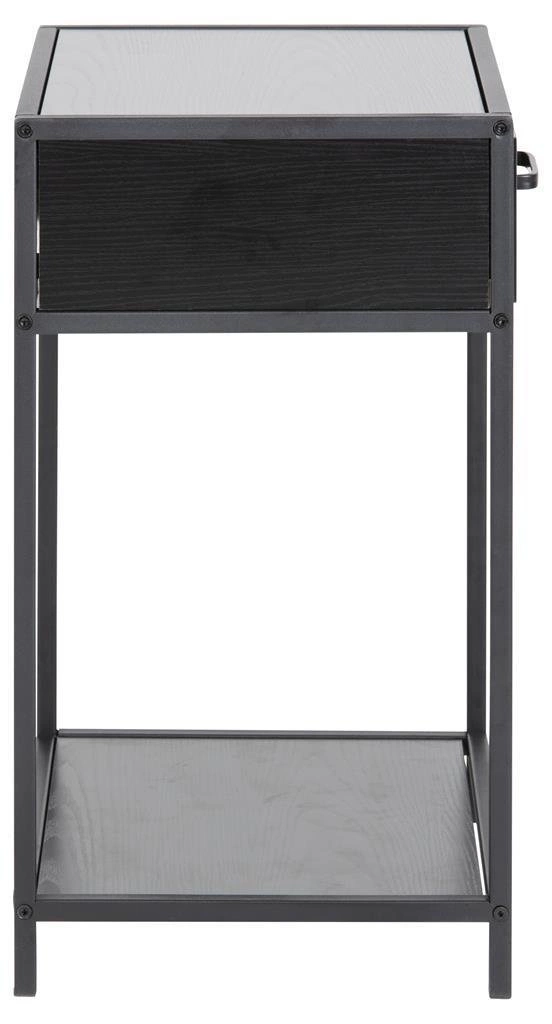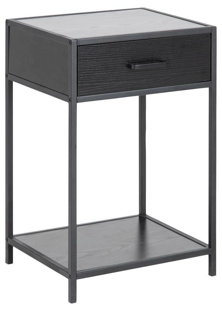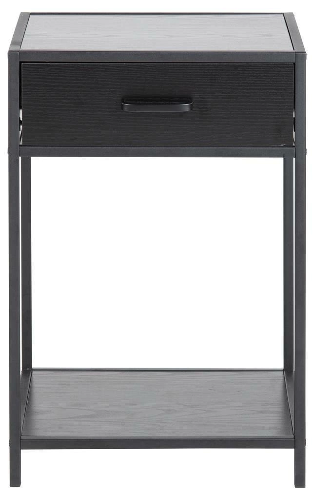 Jeśli szukasz uniwersalnego i minimalistycznego wyposażenia swojej sypialni — szafka nocna Seaford będzie doskonałym wyborem! Jest to industrialny mebel wykonany z metalu malowanego proszkowo na czarno oraz płyty MDF wykończonej laminatem w tej samej barwie. Podstawa, jak i baza mają eleganckie matowe wykończenie utrzymane w ciemnej kolorystyce. Szafka nocna posiada jedną pojemną szufladę, na potrzebne przedmioty, które chcesz mieć pod ręką. Poza tym uzupełnia ją półka, która również stabilizuje podstawę. Szafka nocna jest prosta w konstrukcji, zapewnia stabilność i minimalistyczny wygląd. Mebel wymaga montażu. Maksymalne obciążenie szafki wynosi 30 kg.