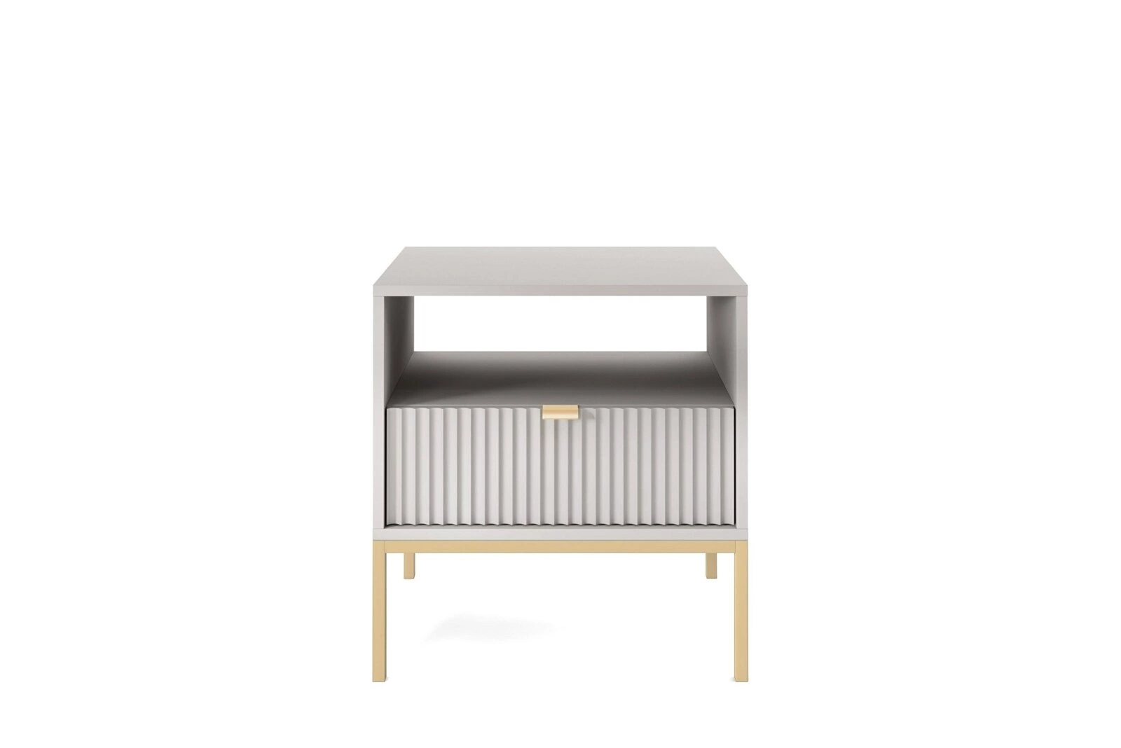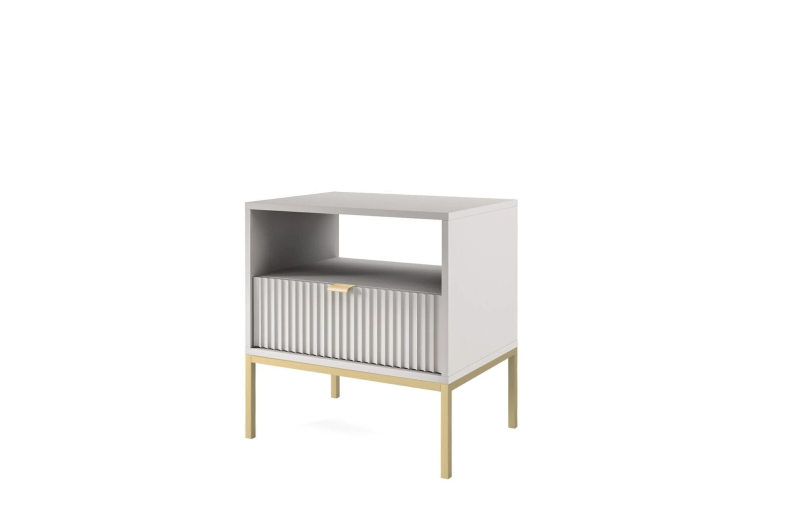 Szafka nocna Delicious 54 cm ryflowana szara z metalowymi nogami i złotymi uchwytami, styl glamour, Intesi