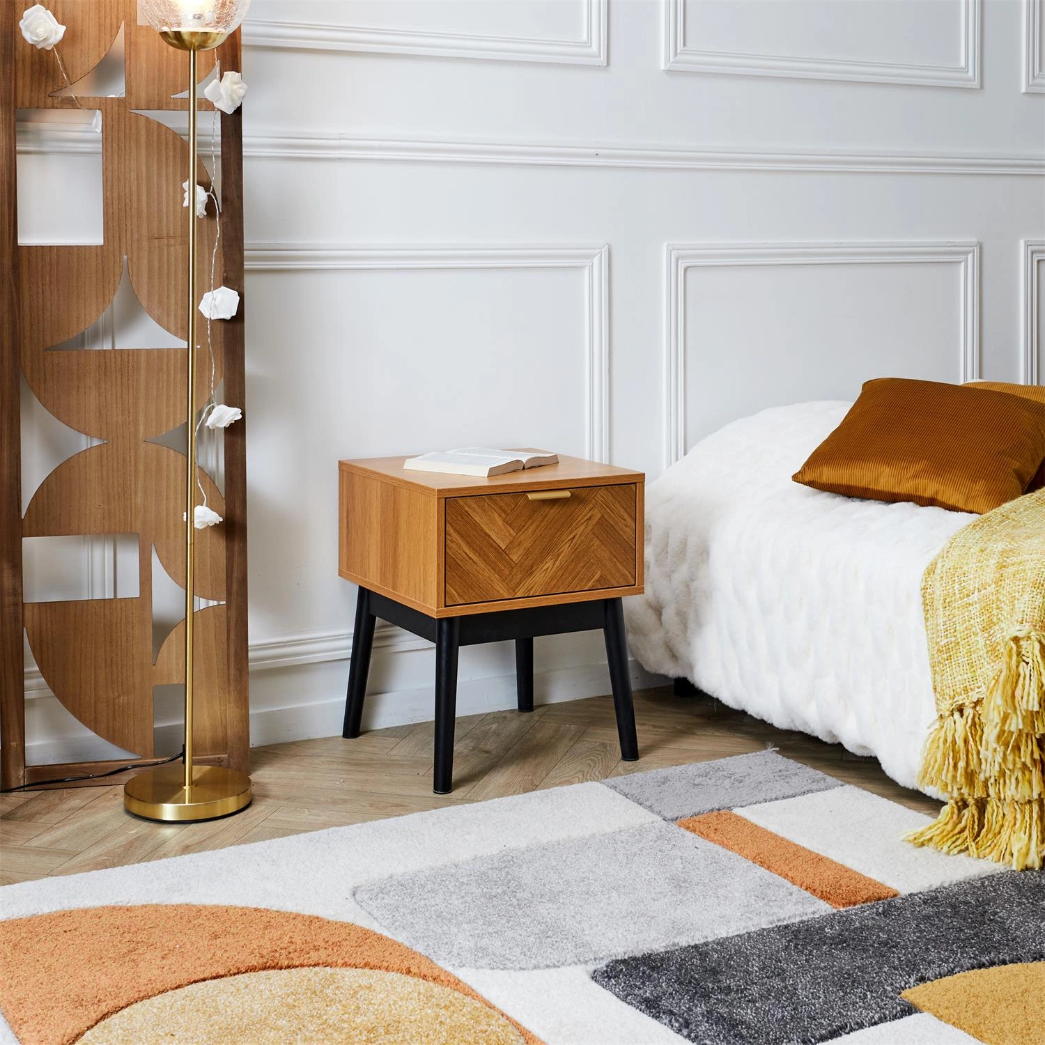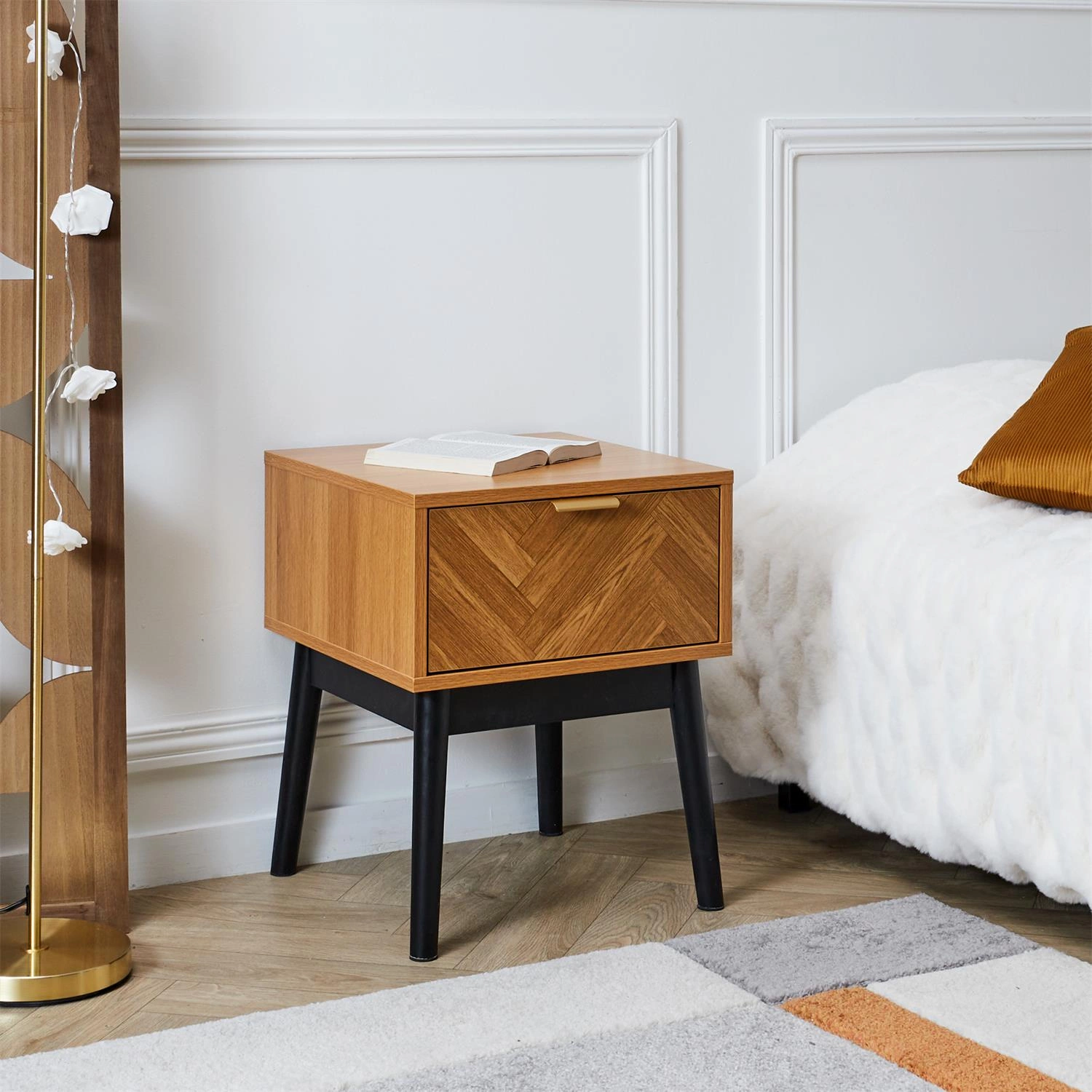Felix to szafka nocna, która łączy w sobie cechy charakterystyczne dla klasycznego stylu francuskiego z nowoczesną funkcjonalnością. Została wykonana z wysokiej jakości materiałów - sosny, płyty wiórowej i MDF, co gwarantuje jej trwałość i estetykę. Dzięki kompaktowym wymiarom, szafka Felix doskonale wpasuje się w każdą sypialnię, oferując miejsce na niezbędne przedmioty, takie jak lampka czy książka. Jej uniwersalny design sprawia, że doskonale komponuje się zarówno z nowoczesnymi, jak i klasycznymi aranżacjami wnętrz.