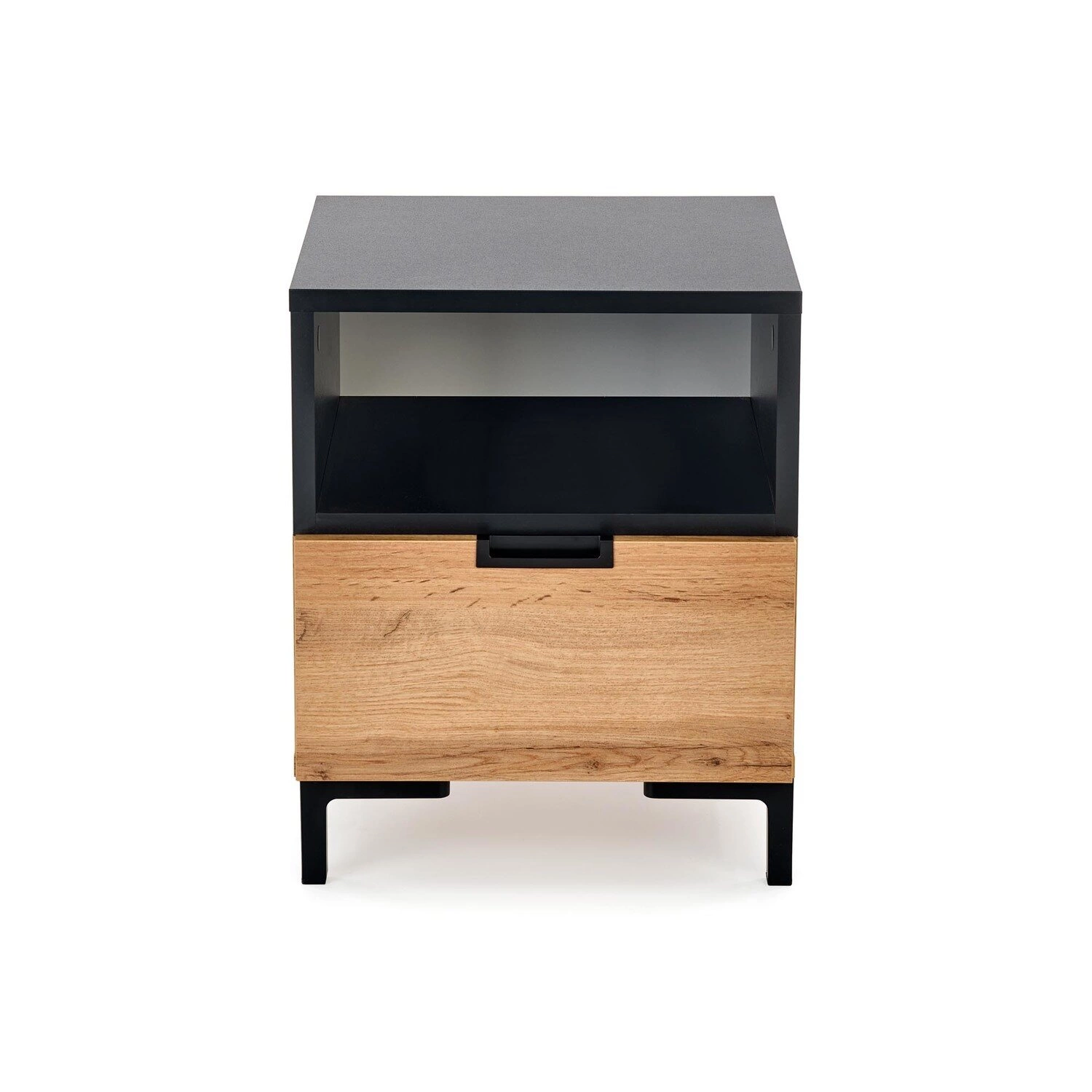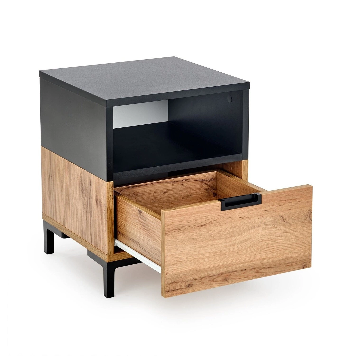 Szafka nocna Tisaia dąb wotan/czarny - praktyczność i elegancja