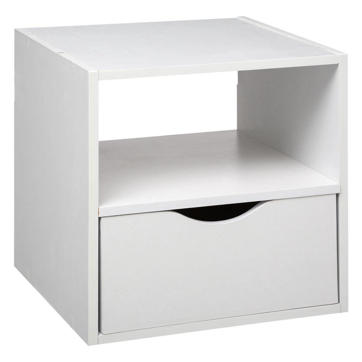 Zestaw zawiera biały kubik oraz wkład w postaci półki z szufladą. Kali to świetny dodatek do niestandardowych mebli modułowych z tej samej serii. Wygodna szuflada z półką wykonana jest z wysokiej jakości materiałów: Płyty MDF pokrytej białym fornirem. Z jej pomocą możesz skonfigurować i stworzyć swój własny, idealny regał! Rozmiar tego elementu idealnie pasuje do większości regałów Kali, więc bez problemu włączysz go do swojej kreacji. Wypróbuj go, a odkryjesz niesamowite możliwości - dodaj do niego półki, kosze lub szuflady, bądź kreatywny i stwórz swój własny, idealny mebel. Mieszaj i dopasowuj, jak tylko chcesz: Szafka + półka do regału to umożliwi!