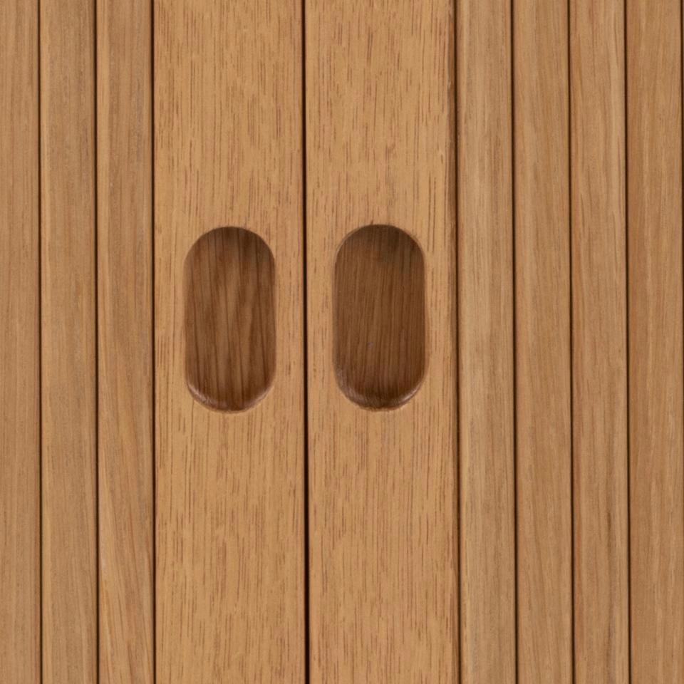 Jedną z głównych zalet tego stolika nocnego jest jego funkcjonalność. Posiada szafkę z drzwiczkami przesuwnymi, które umożliwiają przechowywanie różnych przedmiotów, takich jak książki, okulary czy telefon. Dzięki temu wszystko będzie zawsze pod ręką, a sypialnia będzie utrzymana w porządku. Nie tylko zapewnia on praktyczne rozwiązania przechowywania, ale także dodaje uroku i stylu do Twojej sypialni. Jego charakterystyczny wygląd, z listwami, okrągłym kształtem i lakierowanymi dębowymi akcentami, przyciągnie uwagę każdego.
