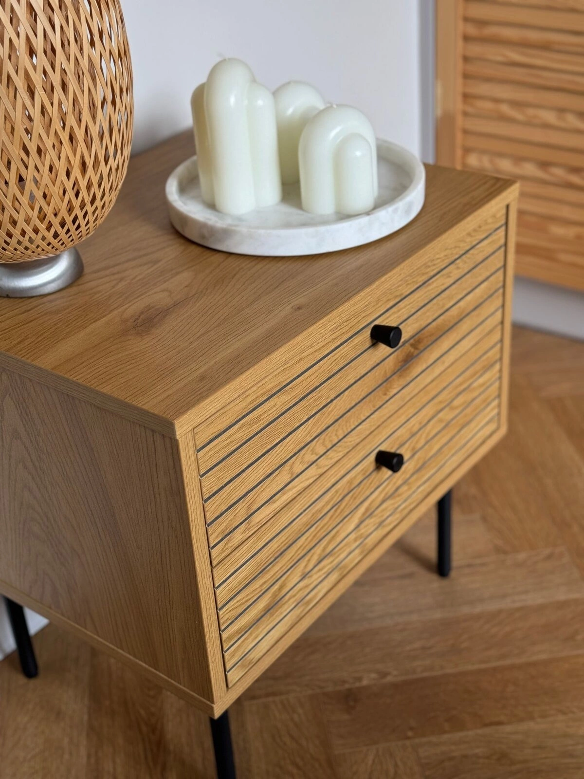 Szafka nocna Lattes dąb to nie tylko elegancki dodatek do Twojej sypialni, ale także funkcjonalne rozwiązanie do przechowywania najpotrzebniejszych przedmiotów przy łóżku. Jej solidna konstrukcja wykonana z wytrzymałej płyty MDF zapewnia trwałość i stabilność przez wiele lat.