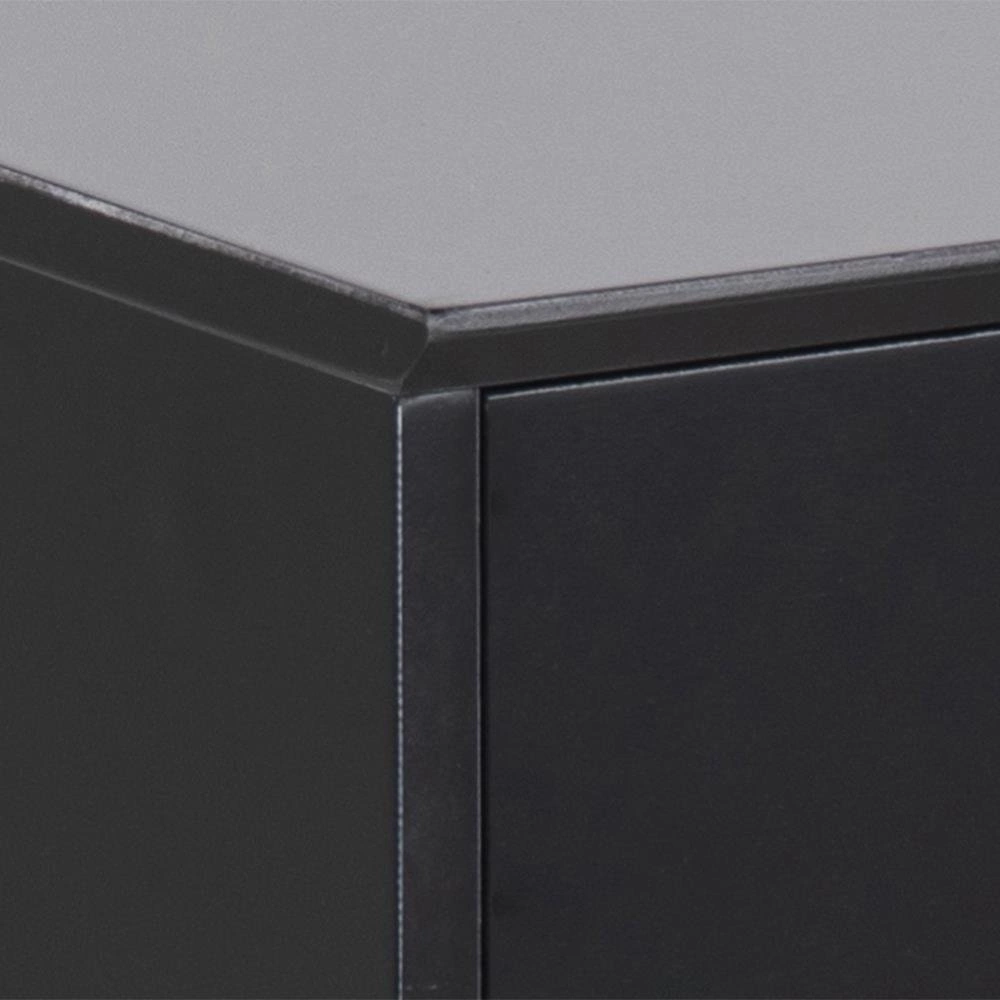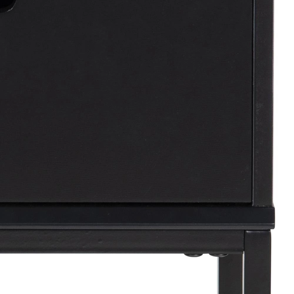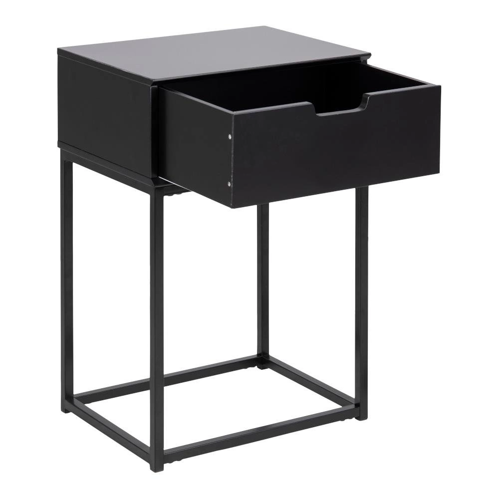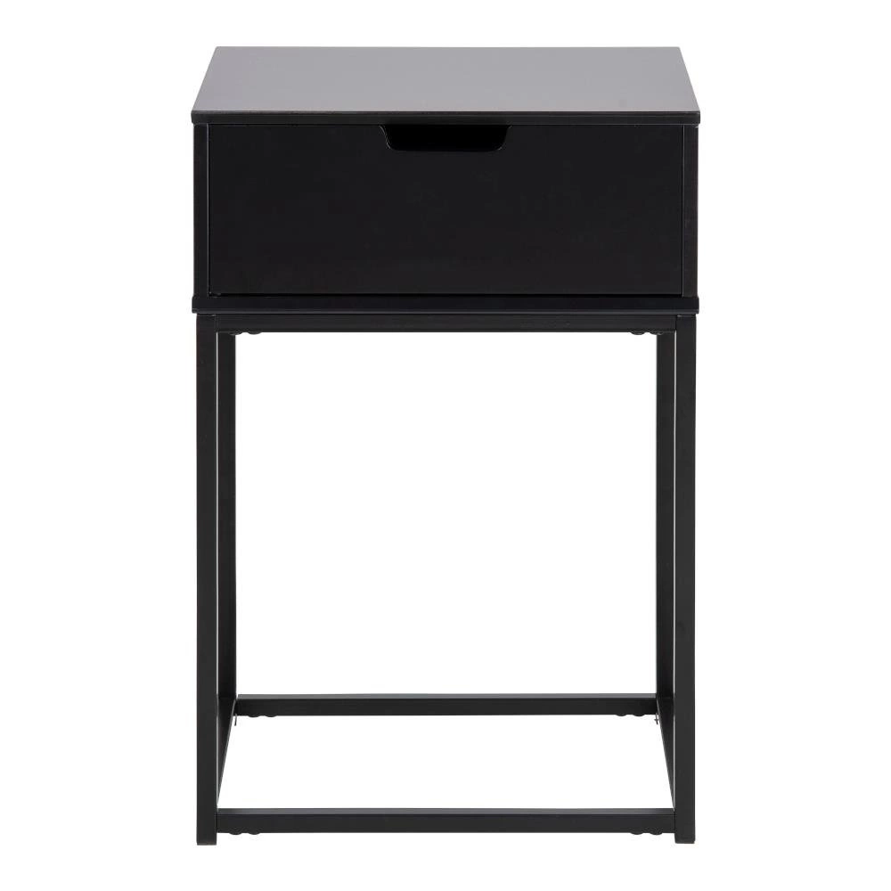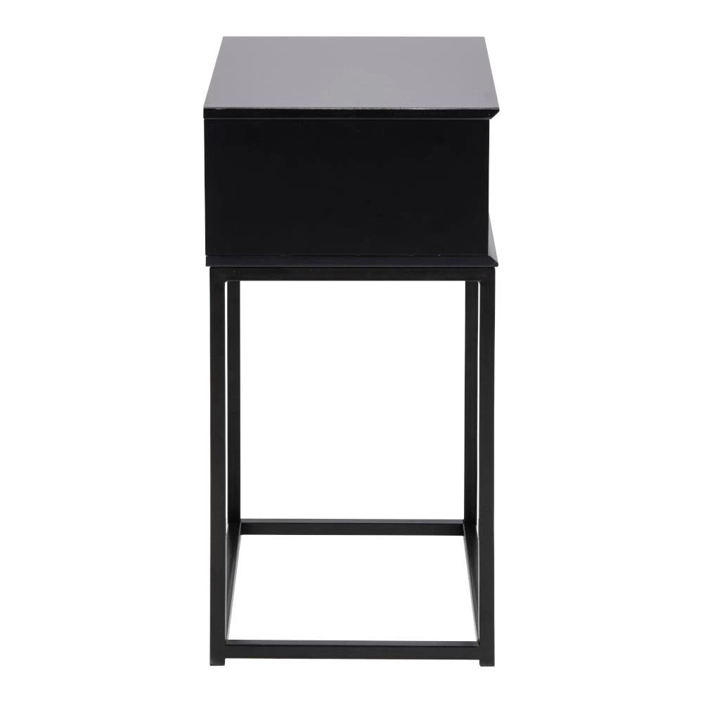 Szafka nocna Mitra utrzymana w stylu skandynawskim wykonana została z płyty MDF w kolorze czarnym. Podstawę stanowią nogi wykonane z metalu polakierowanego na czarno. Całość prezentuje się wyjątkowo subtelnie i nowocześnie. Szafka wyposażona jest w jedną bardzo pojemną szufladę. Waga: 6,5 kg.