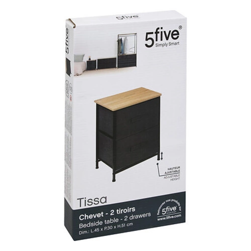 Szafka nocna Tissa marki 5five simply smart to nowoczesny mebel do sypialni, który łączy funkcjonalność z minimalistycznym designem. Kompaktowa szerokość 45 cm i wysokość 51 cm sprawiają, że idealnie pasuje zarówno do mniejszych, jak i większych sypialni. Wyróżnia się eleganckim połączeniem czerni i szarości oraz praktycznymi dwoma szufladami, pozwalającymi utrzymać porządek wokół łóżka.