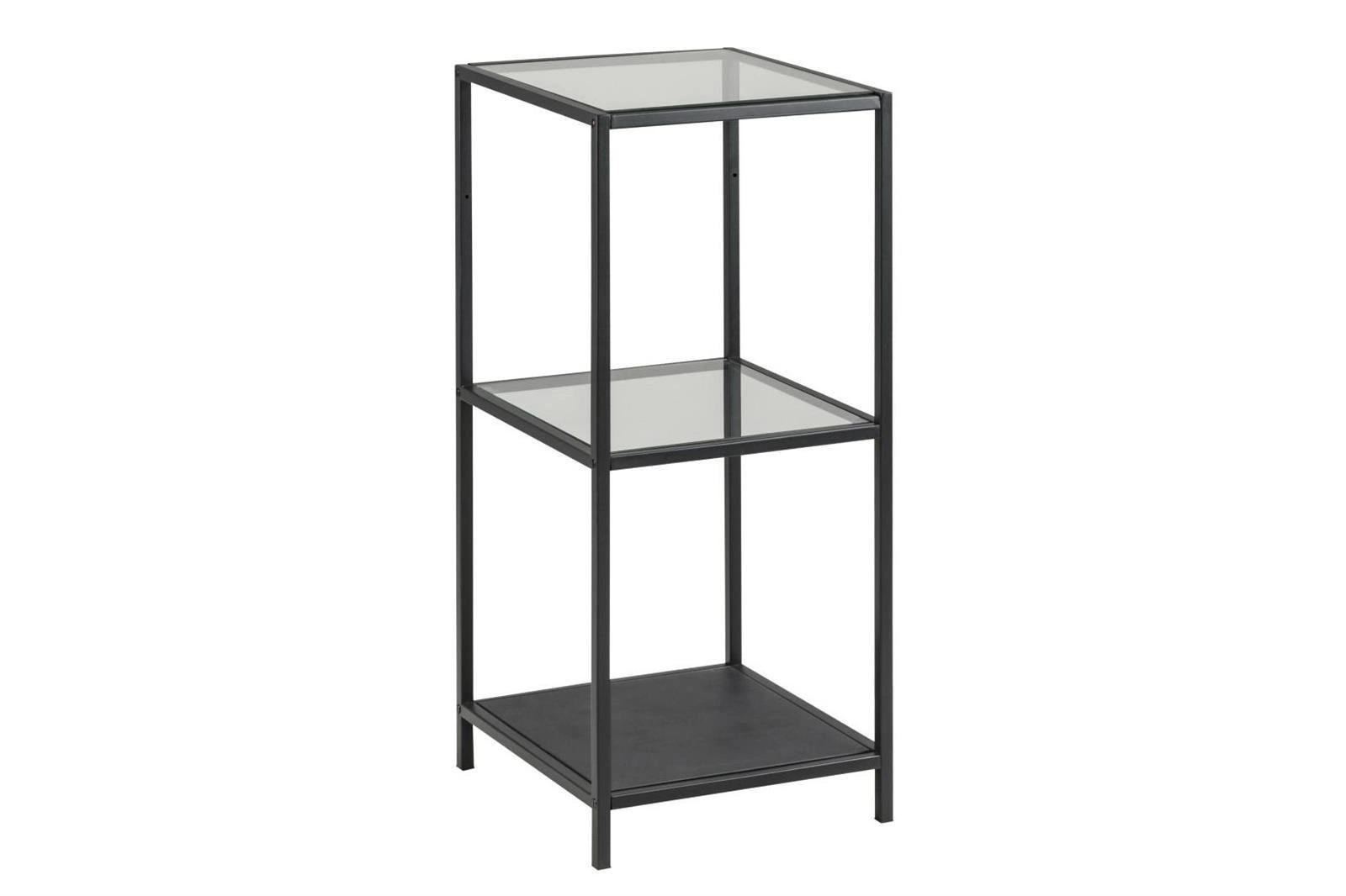 Szafka Seaford II wykonana została z metalu malowanego proszkowo oraz płyty MDF wykończonej laminatem imitującym dąb w kolorze czarnym. Waga: 6,7 kg.
