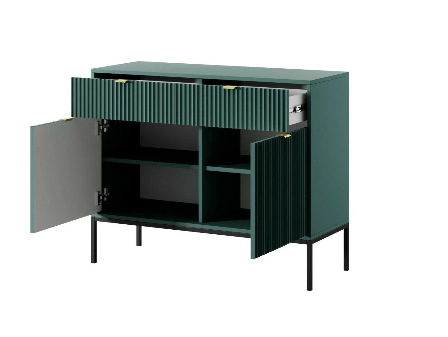 - Szafka nocna Delicious ryflowana zielona czarne nogi