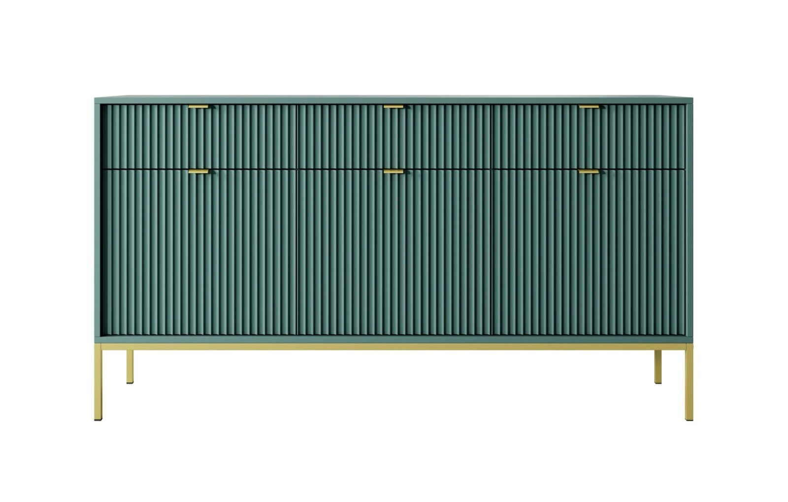 - Komoda Delicious duża ryflowana zielona złote nogi
