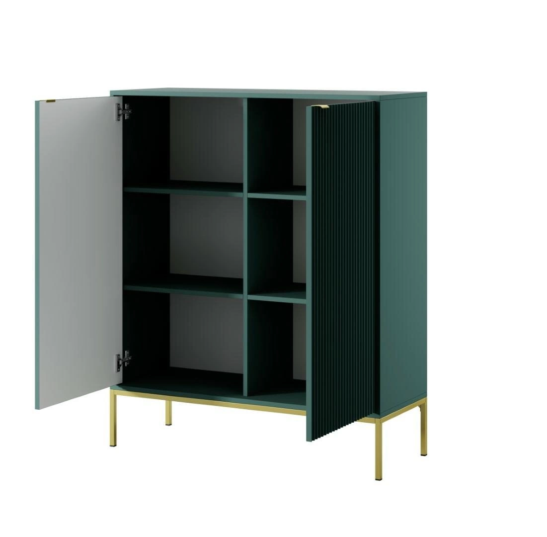 - Elegancki design – ryflowane fronty, złote nogi i zielony kolor nadają luksusowego charakteru