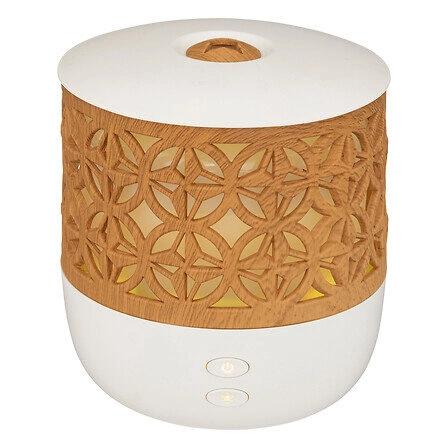 Kiana przykuwa uwagę swoim minimalistycznym wzornictwem, umiejętnie łącząc biel z elementami o wyglądzie naturalnego drewna. Ten dyfuzor zapachowy doskonale współgra ze współczesnymi aranżacjami, wprowadzając do wnętrza lekkość i harmonię. Okrągły kształt oraz delikatne linie czynią go nie tylko praktycznym urządzeniem, ale także stylową dekoracją, która podkreśli charakter każdego pomieszczenia.