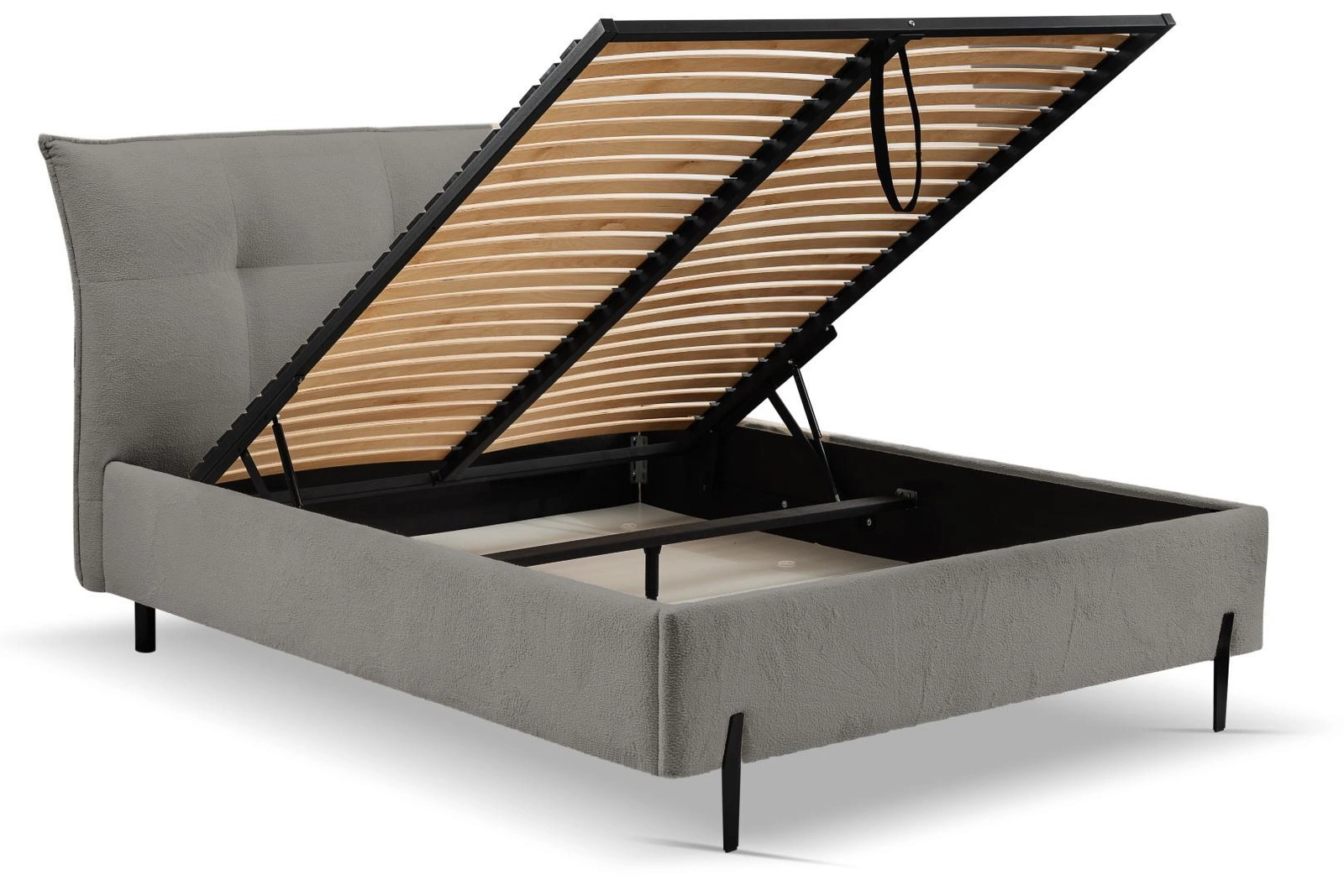 Brakuje Ci miejsca na pościel, koce lub sezonowe tekstylia? Łóżko tapicerowane Biscuit z pojemnikiem to rozwiązanie, które pozwala efektywnie zagospodarować przestrzeń w sypialni. Podnoszony stelaż z łatwym dostępem do pojemnika umożliwia szybkie przechowywanie i wyjmowanie rzeczy, dzięki czemu w Twoim wnętrzu zapanuje ład i porządek. Takie łóżko z pojemnikiem na pościel to szczególnie praktyczna opcja do mniejszych mieszkań lub dla osób ceniących funkcjonalność.