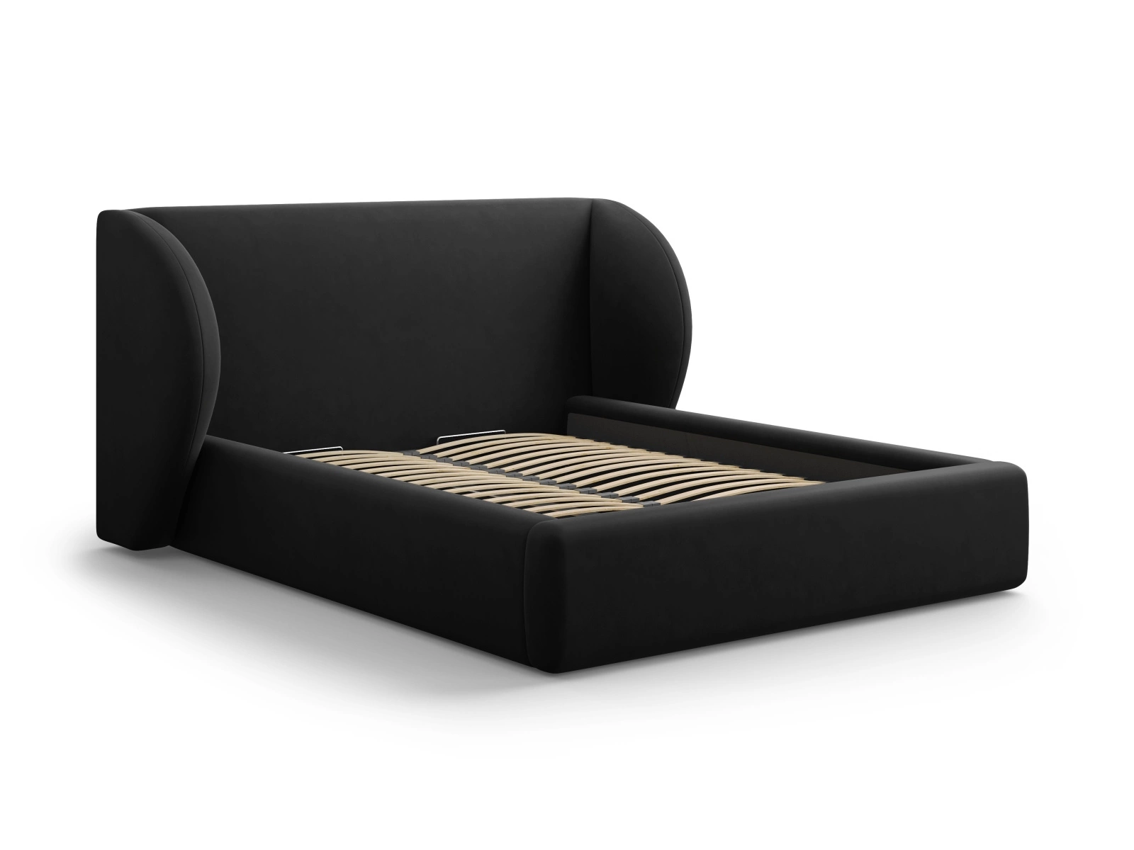 Łóżko Miley II czarne welurowe 160x200 z pojemnikiem zaprojektowano z myślą o osobach, które cenią sobie zarówno wygodę, jak i wyrafinowany styl. Tapicerka z miękkiego, przyjemnego w dotyku weluru nie tylko wspaniale się prezentuje, ale sprawia też, że wypoczynek staje się prawdziwą przyjemnością. Wysokie, dekoracyjne wezgłowie nadaje wnętrzu ekskluzywnego charakteru oraz zapewnia wygodne oparcie podczas czytania czy wieczornego relaksu.