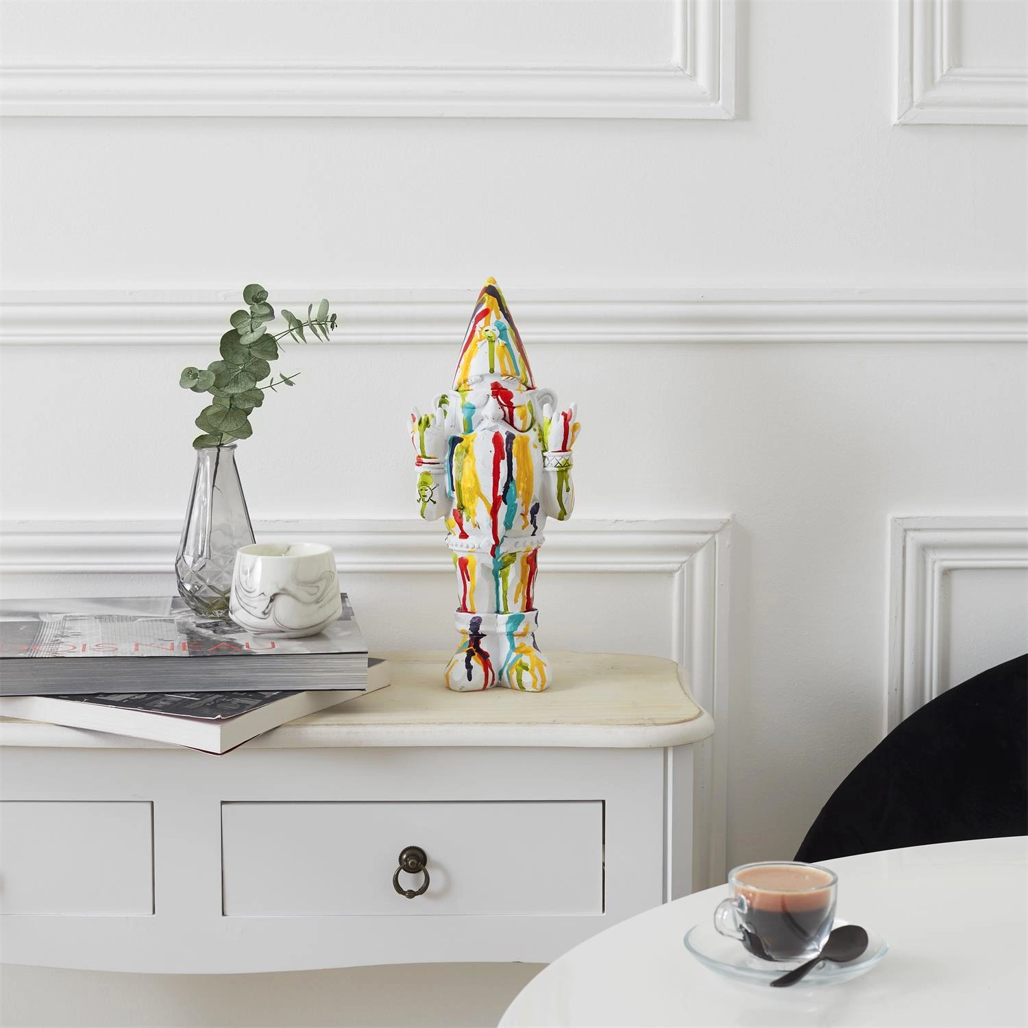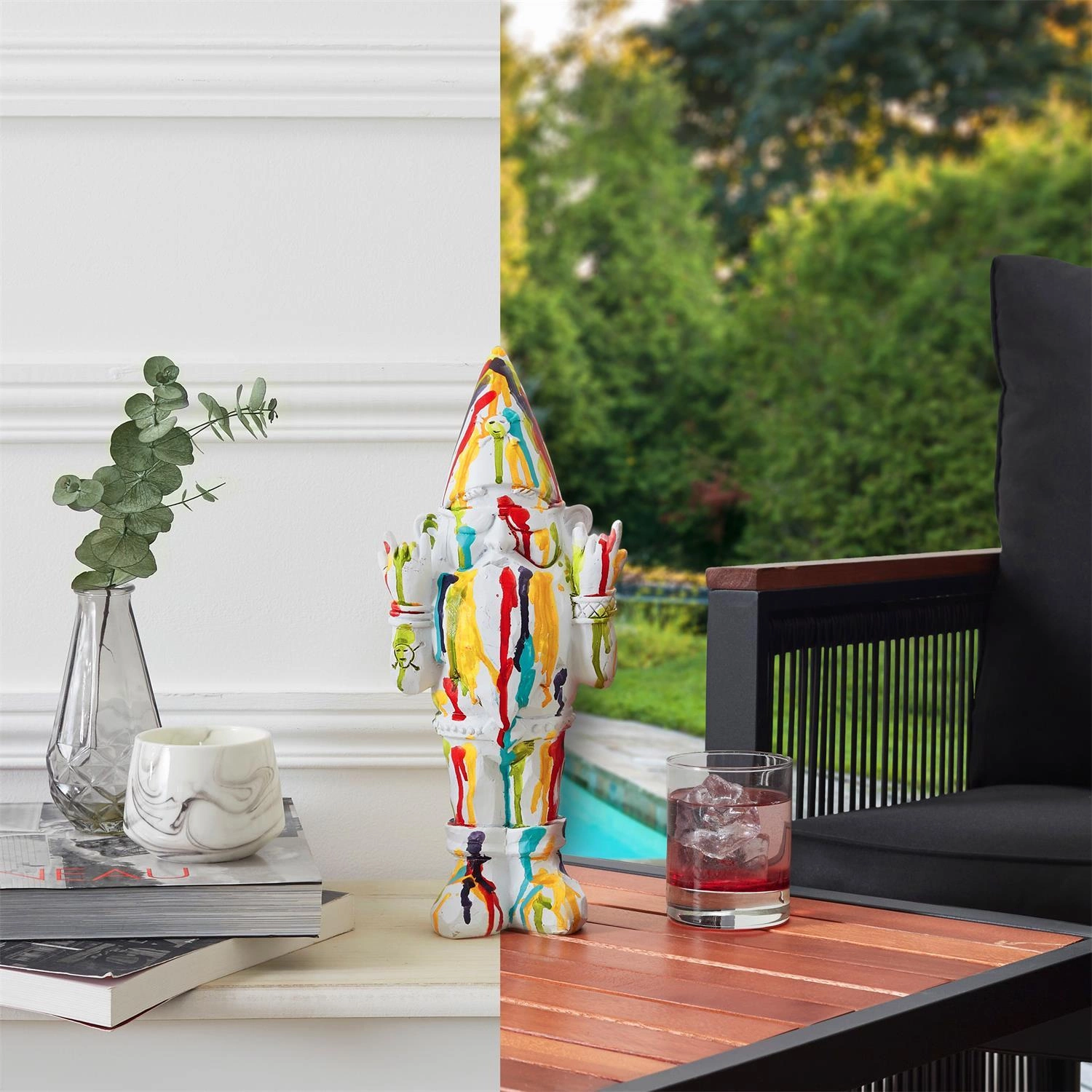 Figurka Gnom Rock Intesi zachwyca minimalistycznym, a jednocześnie zadziornym designem, doskonale wpisując się w estetykę nowoczesnych wnętrz i ogrodów. Jej dynamiczna sylwetka oraz połyskliwe wykończenie sprawiają, że staje się ona wyjątkową ozdobą, która podkreśli charakter każdego miejsca. Wyrazisty kształt oraz subtelny biały kolor pozwalają na łatwe dopasowanie do różnych aranżacji – od salonu, przez sypialnię, aż po taras czy biuro.