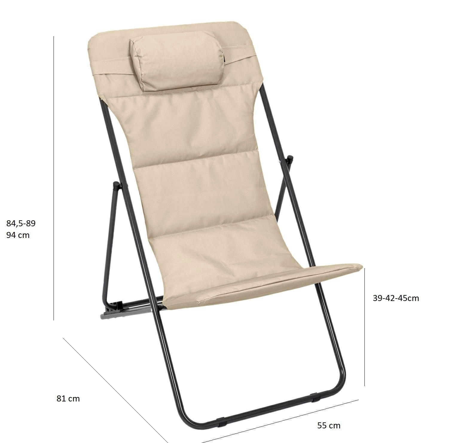 Leżak ogrodowy Grue beżowy marki Ventos to propozycja dla osób ceniących nowoczesny styl, wygodę i funkcjonalność. Składana konstrukcja, wytrzymała metalowa podstawa w eleganckiej czerni oraz beżowe siedzisko z trwałej tkaniny sprawiają, że ten model doskonale sprawdzi się zarówno na tarasie, w ogrodzie, jak i podczas wypoczynku na plaży. Regulowane oparcie z możliwością dostosowania kąta nachylenia pozwala na indywidualne ustawienie pozycji, zapewniając komfort nawet podczas dłuższego relaksu.