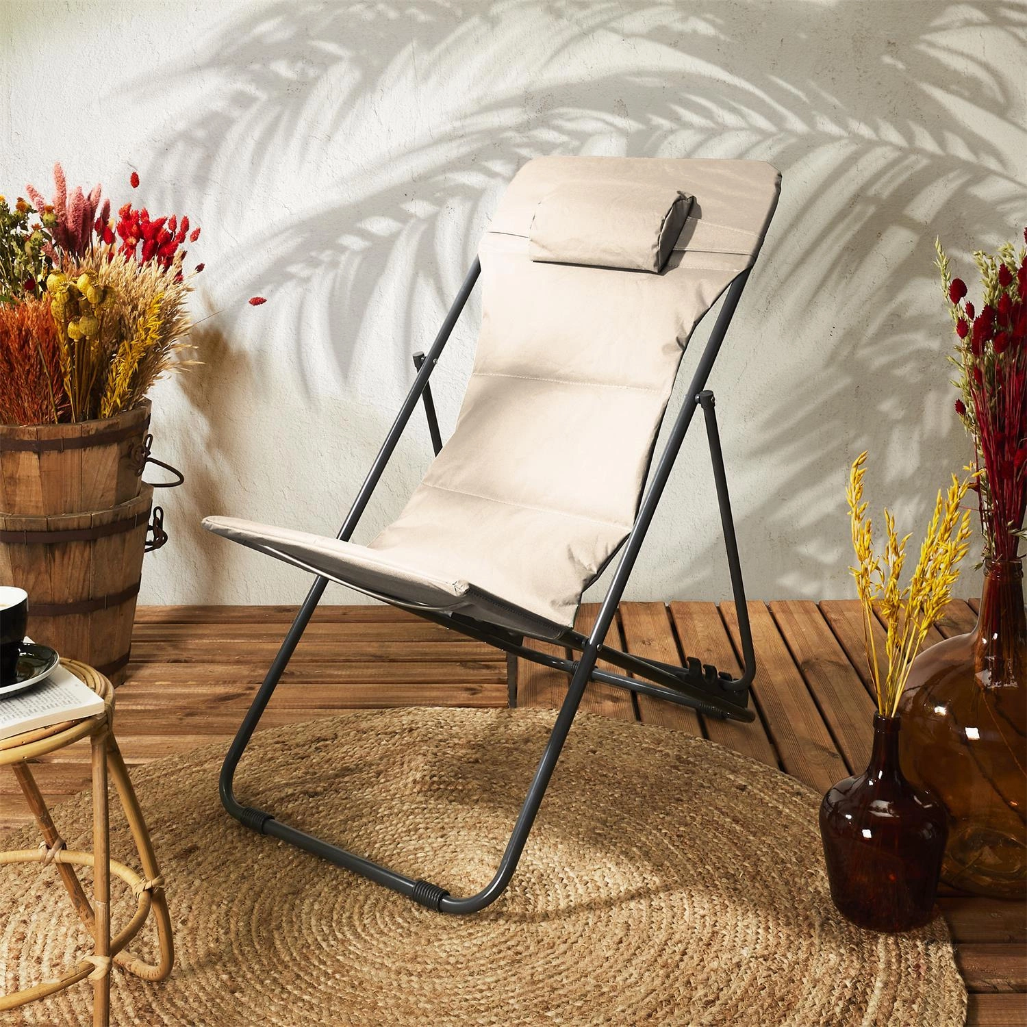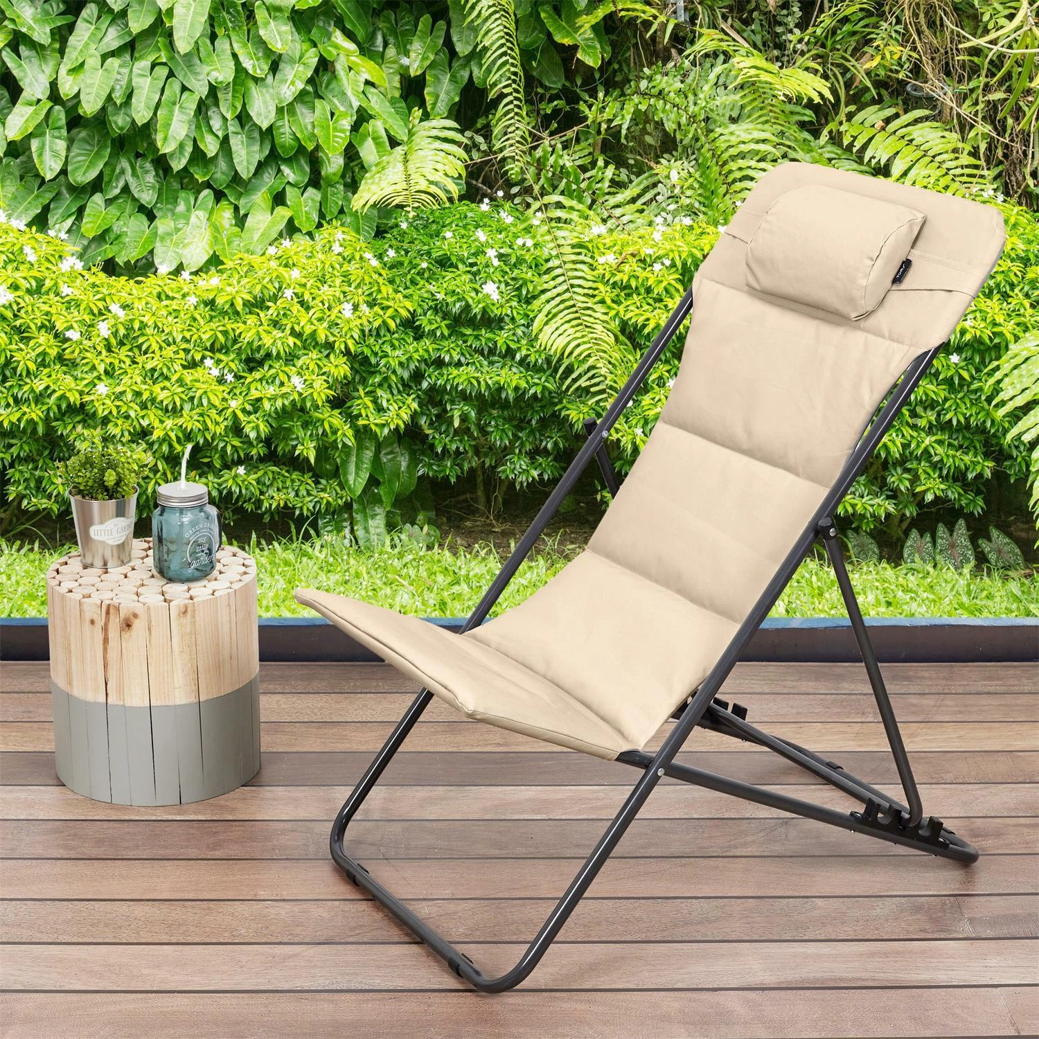 Największą zaletą leżaka ogrodowego Grue jest regulowane oparcie, dzięki któremu łatwo dostosujesz kąt nachylenia do swoich potrzeb – niezależnie, czy czytasz książkę, czy opalasz się na słońcu. Składana konstrukcja umożliwia szybkie przeniesienie i przechowanie, oszczędzając miejsce, gdy leżak nie jest używany. Leżak gotowy jest do użytku od razu po rozpakowaniu, bez konieczności montażu, co dodatkowo zwiększa wygodę użytkowania.