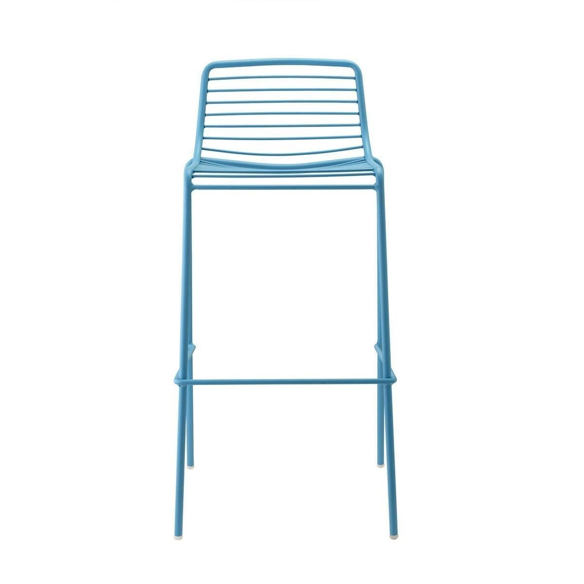 Hoker Summer niebieski metalowy z oparciem nowoczesny sztaplowany do kuchni i ogrodu 75 cm SCAB Design