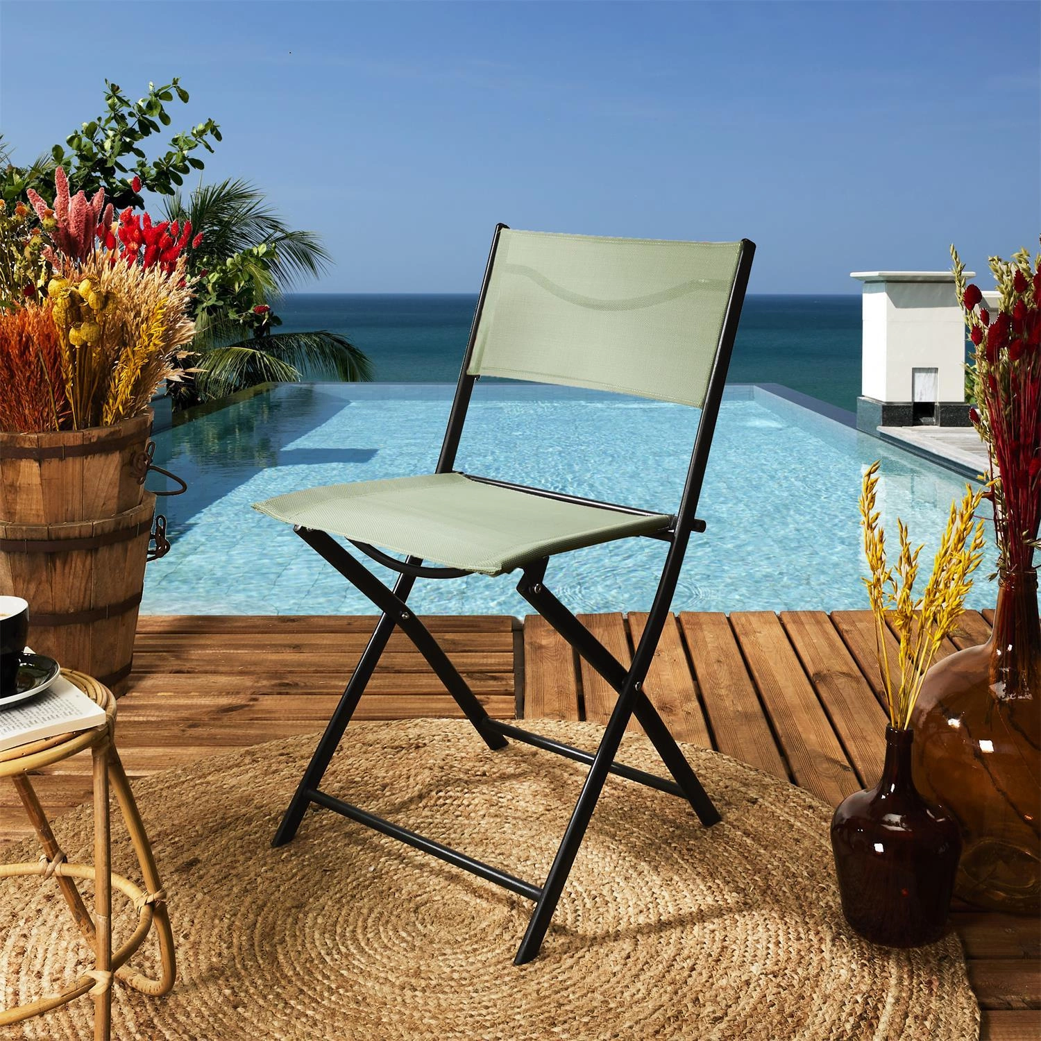 - Uzyskaj luksus siedzenia w ogrodzie - Ciesz się komfortem i stabilnością krzesła na zewnątrz z wygodą składanej konstrukcji.