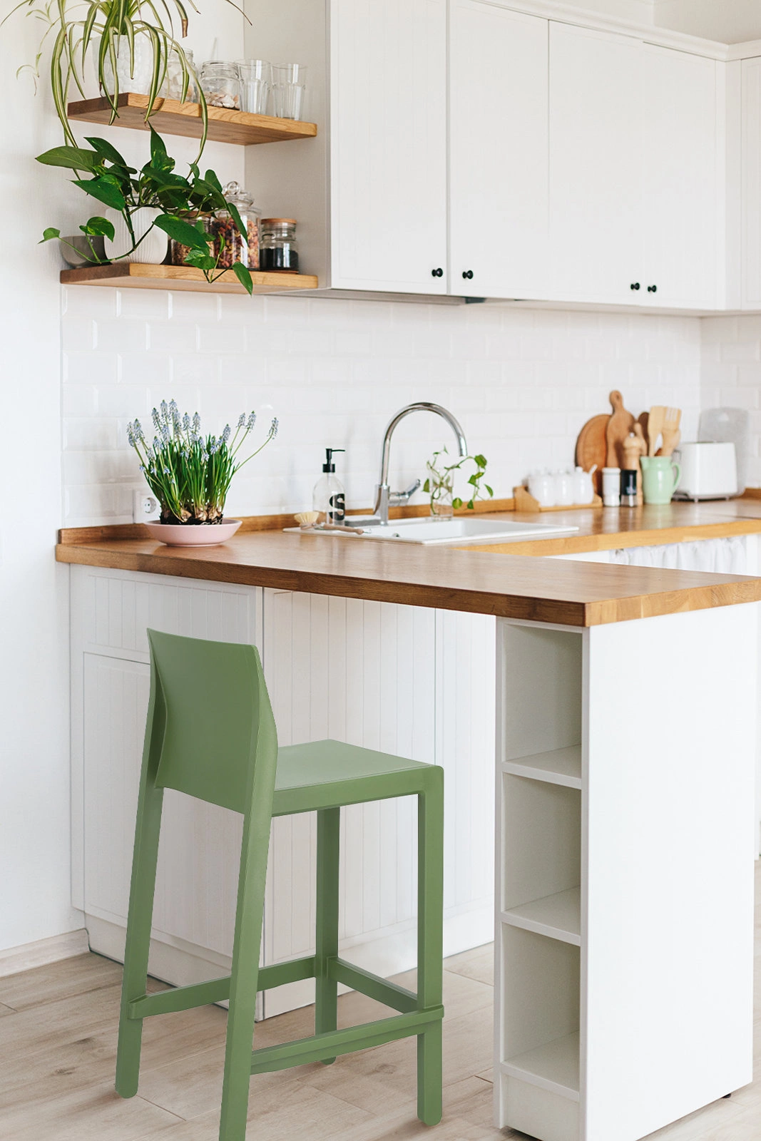 Atutem krzesła barowego Kate jest także bardzo wysokie jak na hoker oparcie. Dzięki niemu korzystanie ze stołka jest dużo wygodniejsze i bardziej komfortowe.