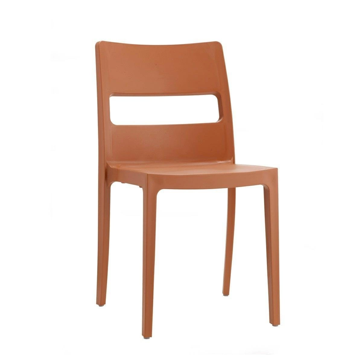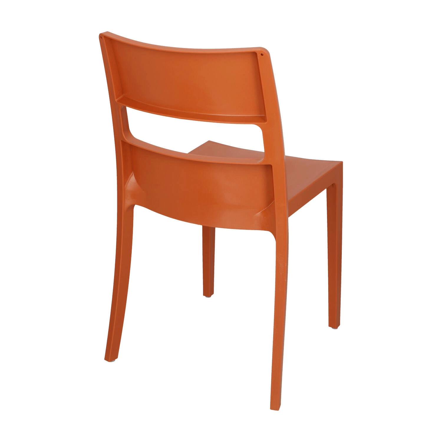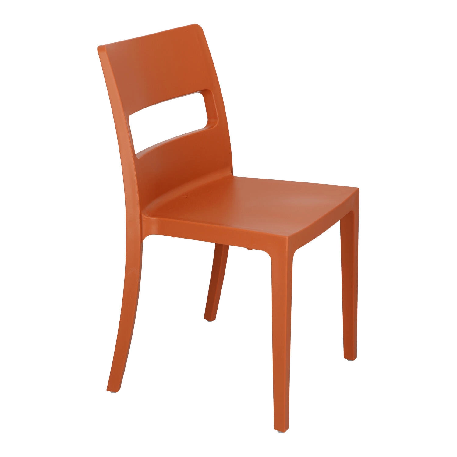 Krzesło ogrodowe Sai marki SCAB Design to nowoczesne, sztaplowane krzesło wykonane z wytrzymałego tworzywa sztucznego w intensywnym, ciemnopomarańczowym kolorze. Zostało zaprojektowane z myślą o użytku na zewnątrz – w ogrodzie, na tarasie czy podczas eventów plenerowych – oraz w przestrzeniach komercyjnych, takich jak sala bankietowa czy restauracja. Kompaktowe wymiary (wysokość 82 cm, szerokość 48 cm, głębokość 51 cm) i wygodne siedzisko na wysokości 46 cm zapewniają komfort nawet przy dłuższym użytkowaniu.