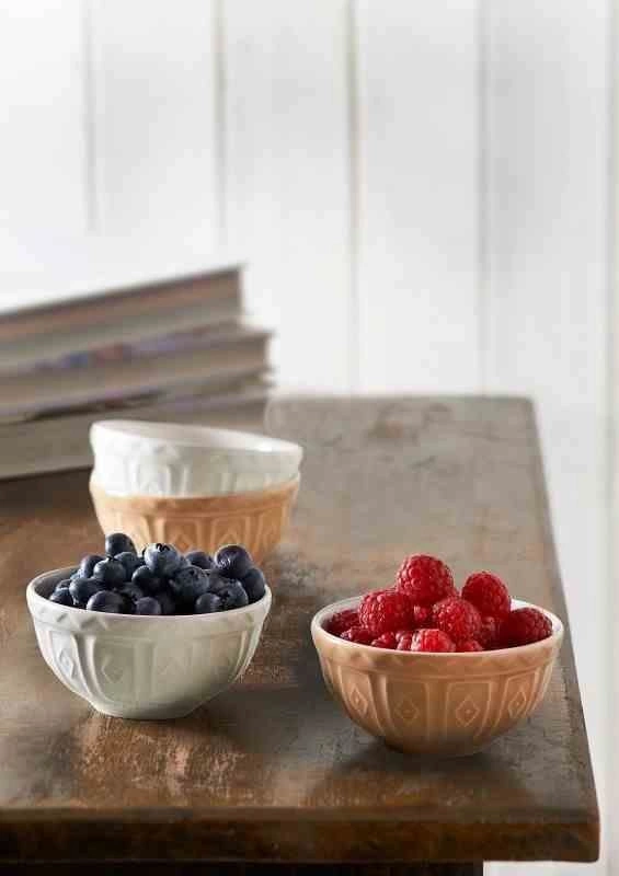 Miseczki zostały wykonane z wysokiej jakości ceramiki, która jest odporna na odpryski, dzięki czemu są trwałe i wytrzymałe na codzienne użytkowanie. Naczynia te pochodzą z kultowej serii Mason Cash, znanej na rynku od ponad 100 lat, co świadczy o ich niezawodnej jakości. Charakterystyczną cechą miseczek Original Cane są zewnętrzne, tłoczone ścianki, które nadają im wyjątkowy wygląd. Wewnętrzna strona miseczek jest biała, co pozwala na kontrolowanie właściwej konsystencji i koloru składników, co jest istotne przy przygotowywaniu potraw. Miski Original Cane są praktyczne w użytkowaniu. Można je myć w zmywarce, co ułatwia czyszczenie po użyciu. Ponadto, miseczki można również używać w kuchence mikrofalowej, co dodatkowo zwiększa ich funkcjonalność.