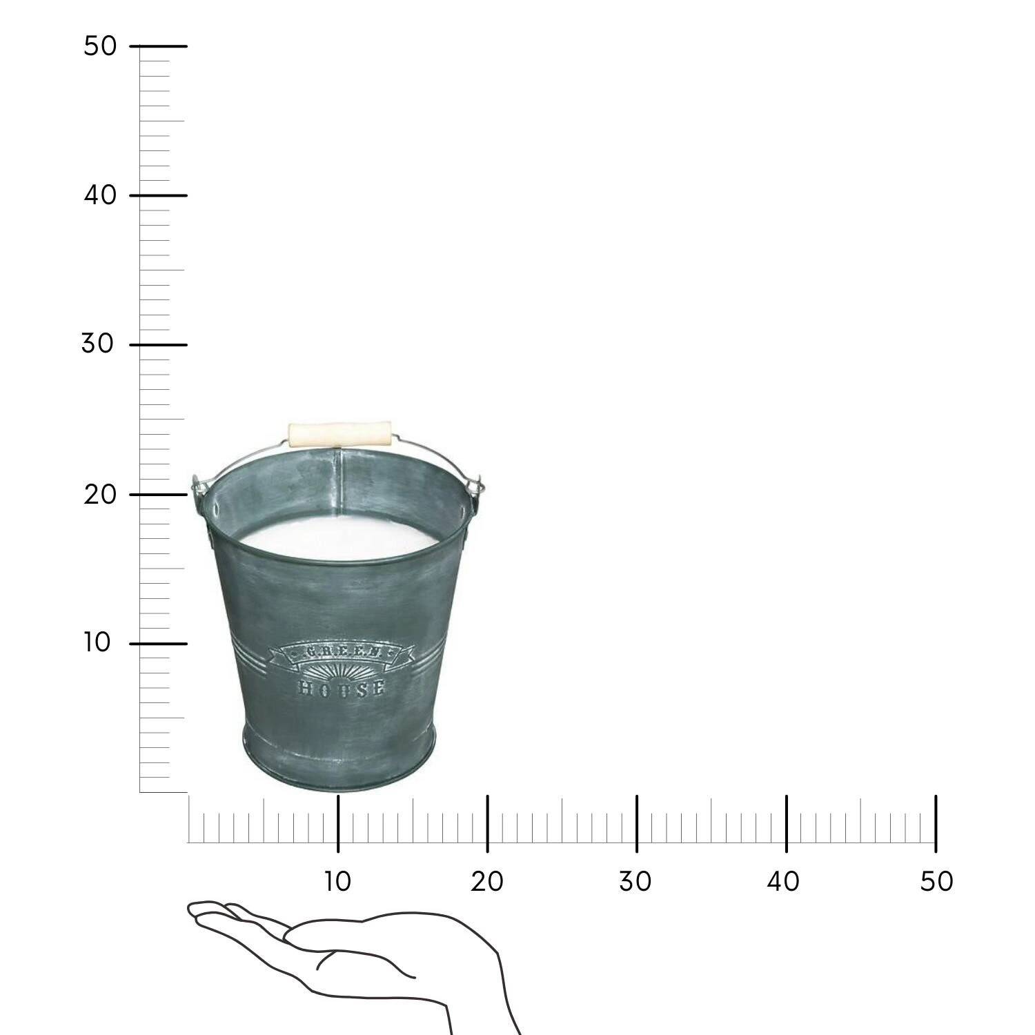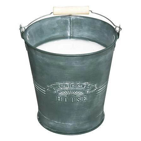 - Styl vintage: postarzane, grawerowane cynkowe wiaderko w zielonym kolorze