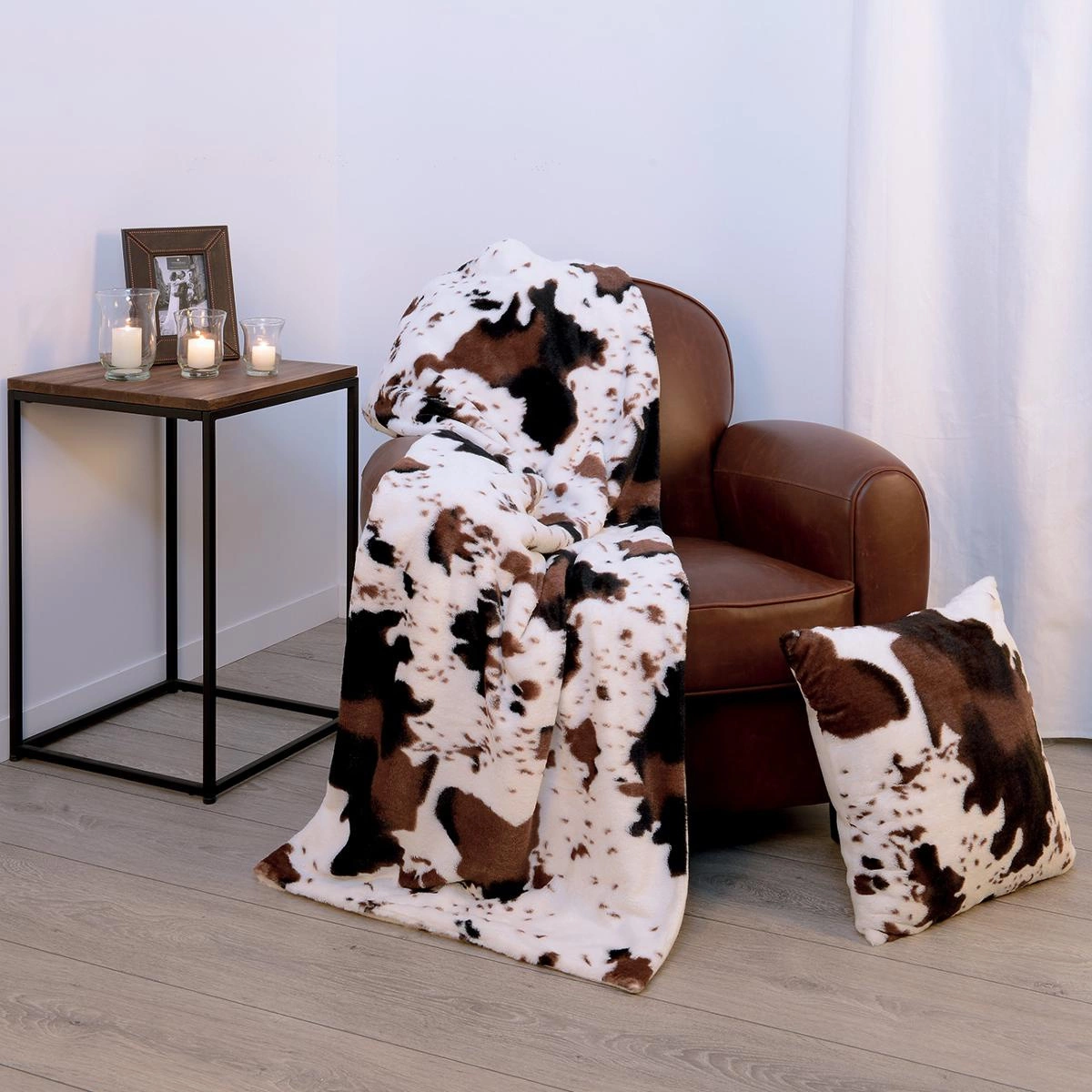 Ten gruby koc polarowy został stworzony z myślą o błogich chwilach odpoczynku. Ciepła tkanina doskonale otula ciało, skutecznie chroniąc przed chłodem w jesienne i zimowe wieczory. Dzięki uniwersalnym wymiarom pled sprawdzi się zarówno jako koc na kanapę, jak i narzuta na łóżko czy dodatkowe okrycie podczas rodzinnych seansów filmowych. Miękka faktura zaprasza do zanurzenia się w jej przytulności, a dekoracyjny wzór “Cow” przyciąga wzrok i ożywia wnętrze.