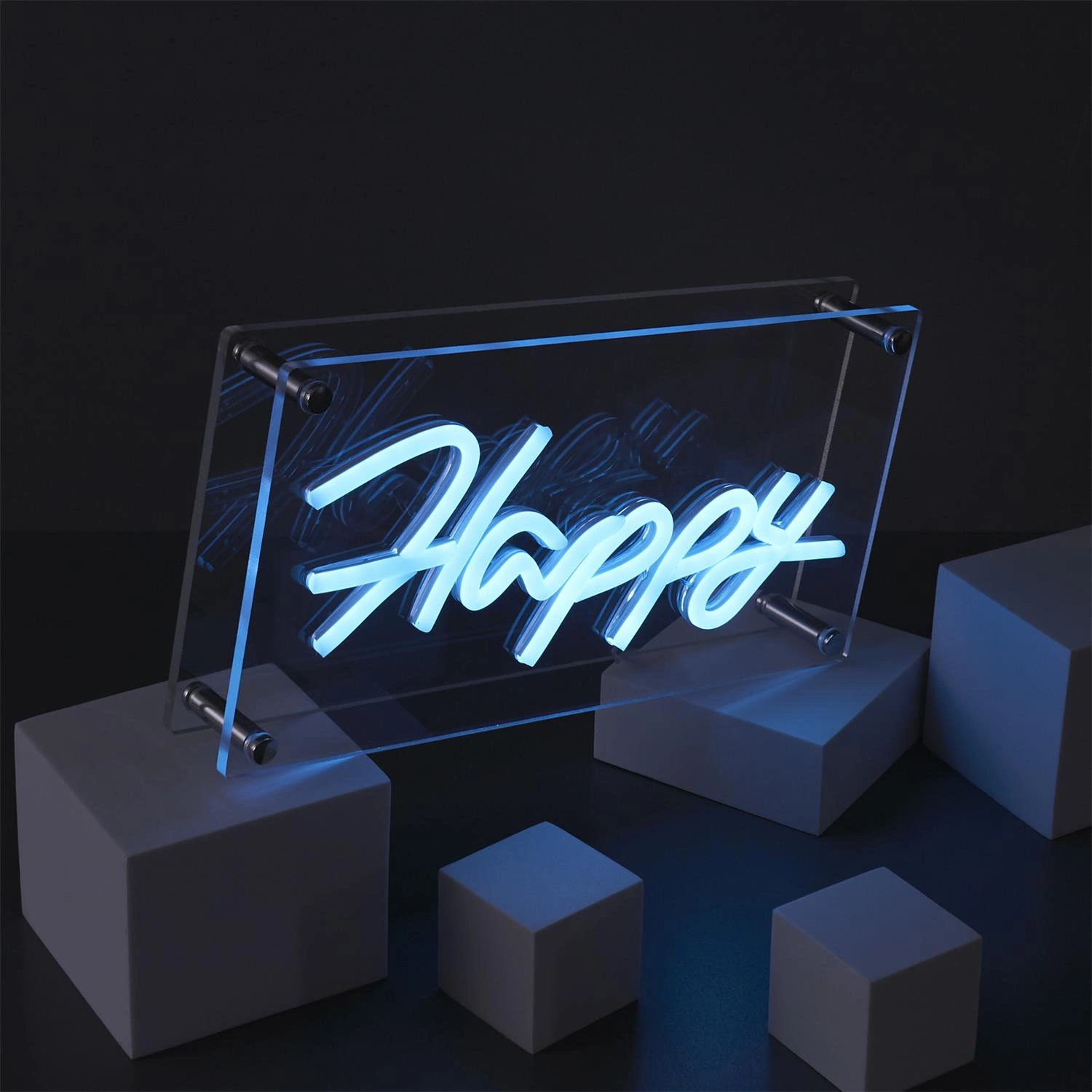 Ledowa lampa z napisem "Happy" to prawdziwy kunszt designu, który z pewnością przyciągnie uwagę. Ta nietuzinkowa lampa, zasilana przez gniazdo USB, stanie się fascynującą ozdobą zarówno w pokoju nastolatki jak i modnej kawiarni.