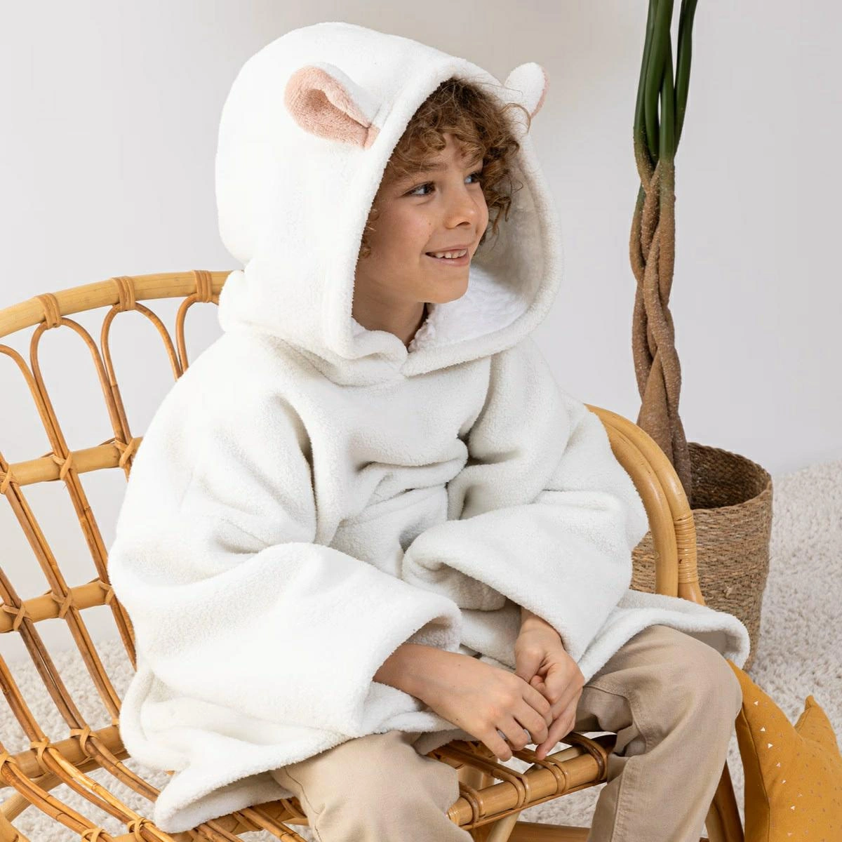 Koc z kapturem Owieczka marki Atmosphera to wyjątkowo miękki, ciepły koc polarowy dla dzieci, który zachwyca uroczym wzorem i praktycznym kapturem w kształcie owieczki. Wykonany z delikatnego materiału, zapewnia komfort termiczny, a kompaktowe wymiary 95×60 cm sprawiają, że idealnie sprawdzi się zarówno w pokoju dziecięcym, jak i podczas rodzinnych wyjazdów. Ten lekki koc z kapturem doskonale otuli malucha podczas odpoczynku, zabawy lub wieczornych rytuałów czytania bajek.