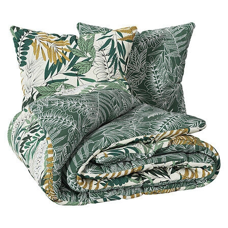 Wzór liści w żywych, multikolorowych odcieniach ożywia każde wnętrze i wnosi świeżość do codziennego odpoczynku. Pościel Tropik doskonale wpisuje się w nowoczesne i orientalne aranżacje, tworząc efektowny punkt centralny sypialni. Odpowiednia zarówno na co dzień, jak i do sezonowych metamorfoz – idealna, gdy chcesz poczuć się jak na wakacjach, nie wychodząc z domu.