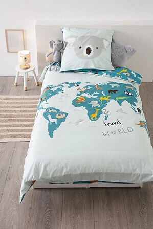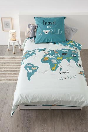 Komplet pościeli dziecięcej z mapą świata 140 × 200 cm — praktyczny dodatek do pokoju dziecięcego!
