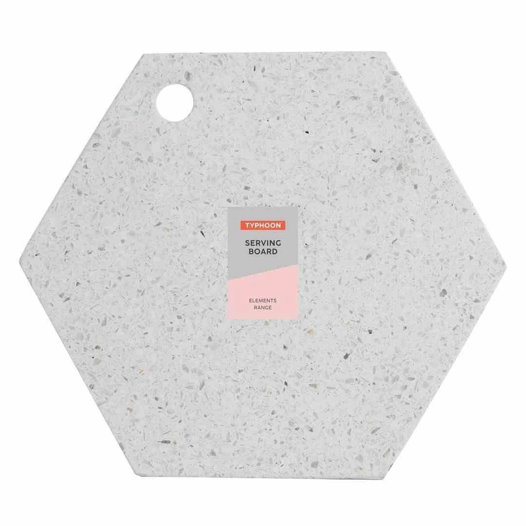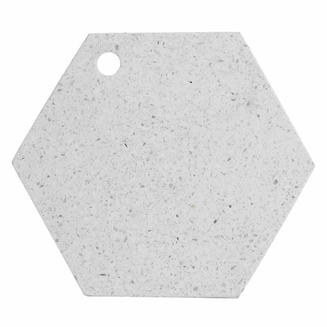 Ta sześciokątna deska do serwowania pysznych przekąsek została wykonana z kamienia z motywem lastryko. Jest wyjątkowa i posiada antypoślizgowe nóżki. Nadaje się także do serwowania zimnych przystawek prosto z lodówki.