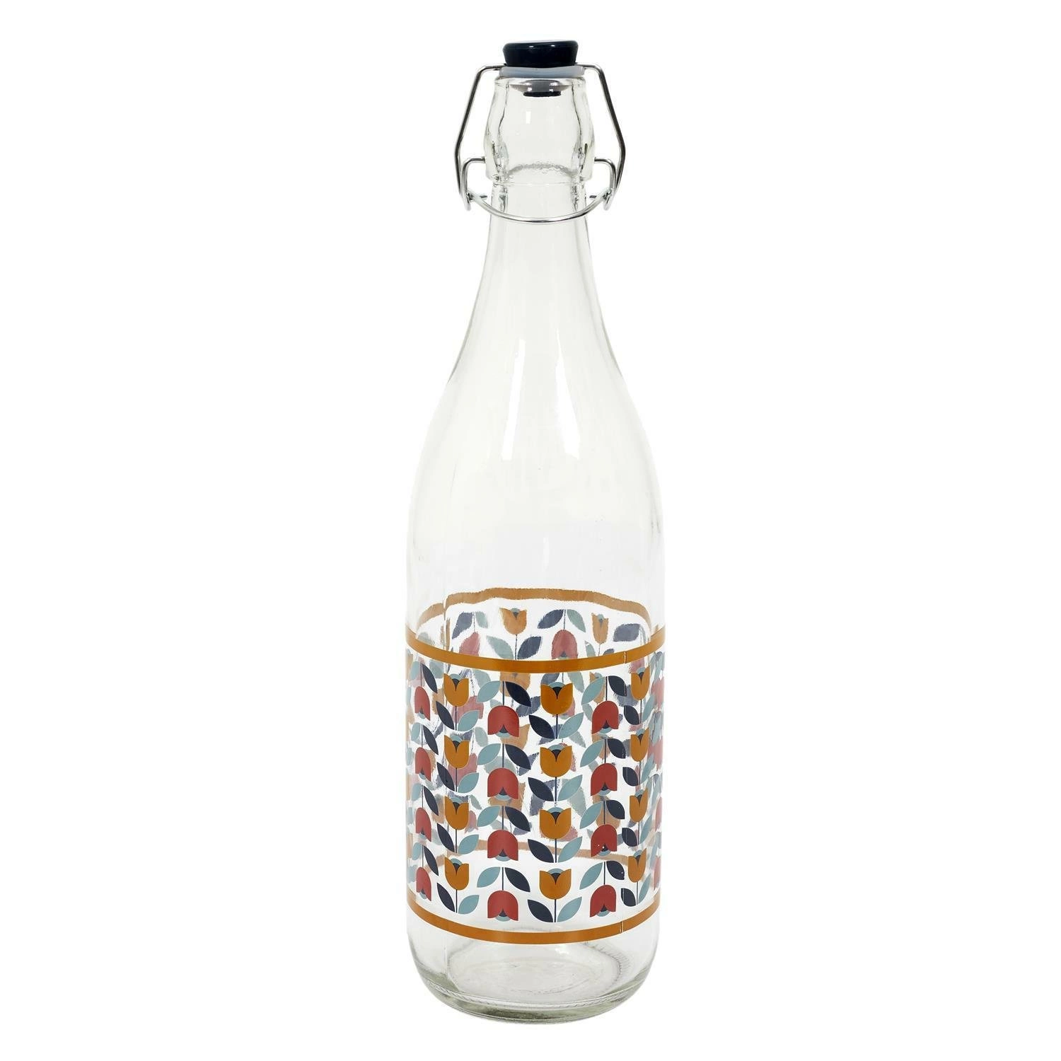 Lubisz wzornictwo o prostej dekoracji w stylu vintage? Kolekcja Tulip będzie idealna dla Ciebie! Są to akcesoria kuchenne w postaci naczyń ozdobionych wzorem graficznym przypominającym tulipany. Jest to seria, którą możesz skompletować z tacy, maselniczki, kubków i podstawki na jajko. Butelka szklana będzie doskonała do przechowywania domowych przetworów i lemoniady w gorące dni. Wygodny wekowy kapsel zabezpieczy napój przed rozlaniem, dzięki czemu śmiało możesz przenosić butelkę w piknikowym koszyku czy torbie podróżnej. Szklana butelka o pojemności 1 litr to nie tylko funkcjonalny dodatek, ale także ozdoba o ciekawym wzorze nawiązującym do wiejskiej sielanki. Kolorowy wzór nastraja pozytywnie i podkreśla klimat wnętrza w stylu retro i vintage.