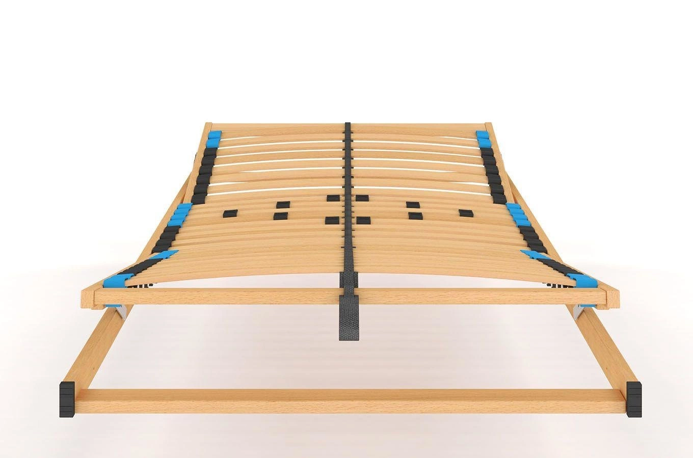 Składa się on z 28 listew wykonanych z wytrzymałej i elastycznej sklejki brzozowej, której charakterystyczna budowa przenosi duże obciążenia. Każda z nich umieszczona została w trwałych uchwytach z tworzywa sztucznego, dzięki czemu pracują w osi pionowej "góra-dół", jak również na boki. Dla zwiększenia komfortu użytkowania, w części środkowej stelaża listwy zostały wzbogacone o mechanizm suwakowy - przesuwając suwaki regulujemy twardość/sprężystość. Kiedy ustawione są na środku, stelaż jest najbardziej elastyczny. Listwy w tym miejscu montuje się podwójnie (jedna na drugiej). Na całej długości stelaża (na środku) zamocowano pas wzmacniający, dzięki czemu stelaż zapewnia lepszy rozkład ciężaru ciała. Stelaż Visby ARNE wyposażono w pięciostopniową, manualną regulację wysokości zagłówka i podnóżka. Dzięki temu ustawić go można w pozycji od leżącej po relaksującą. Polecamy go pod wszystkie rodzaje materacy.