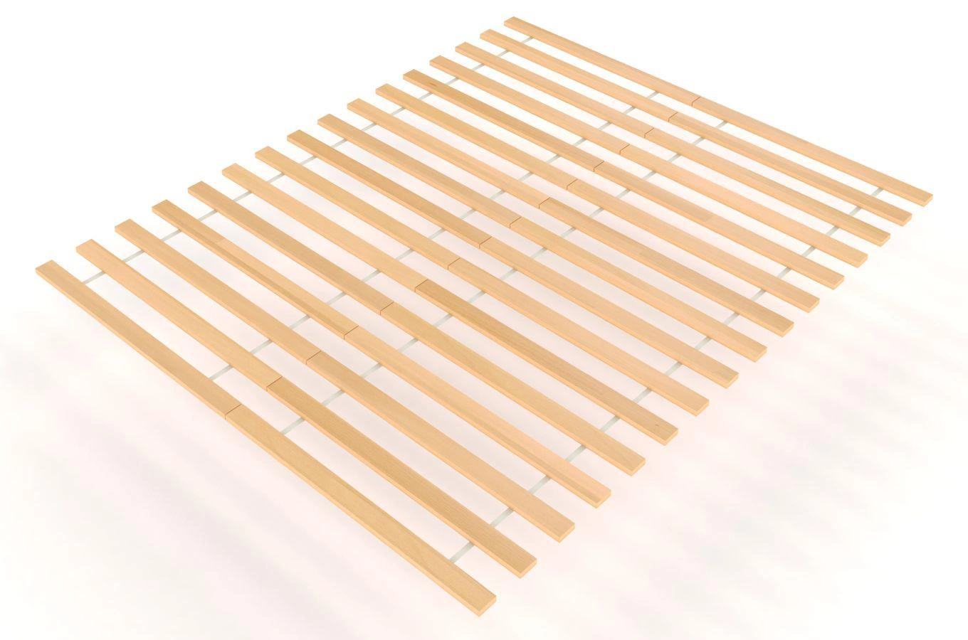 Stelaż dostępny jest w dwóch opcjach: zagęszczonym i niezagęszczonym. Różnica polega na gęstości ułożenia listew, a przez to na elastyczności konstrukcji. Zagęszczony stelaż będzie bardziej stabilny i równomiernie utrzymujący materac, niezagęszczony za to pozwala na większą swobodę ruchu. Produkt dostępny jest w różnych szerokościach: 90 cm, 120 cm, 140 cm, 160 cm, 180 cm i 200 cm. Stelaż idealnie sprawdzi się w przypadku materacy sprężynowych, nie polecamy go natomiast do użytku z materacami piankowymi.